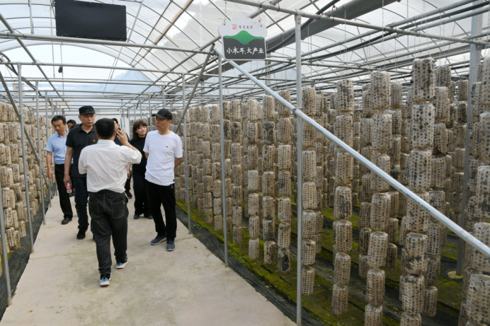 下午,学员们来到柞水县金米村。习近平总书记曾于2020年4月来金米村考察,充分肯定了金米村在决战脱贫攻坚中取得的成绩。金米村也成为三秦大地上脱贫攻坚的一个缩影。学员们参观了木耳大棚,了解了木耳种植技术,对这个小山村取得的瞩目成绩啧啧称赞。