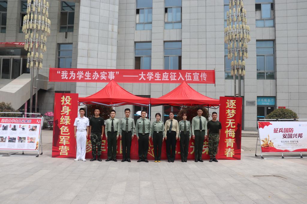 宣传台前,英姿飒爽的退役大学生吸引了众多学生前来咨询,武装部工作人员和退役学子们就同学们的提问做出了耐心细致的解答,全方位、多角度向同学们介绍了2021年大学生征兵入伍的流程、应征条件等,并详细讲解了精准征兵和参军优抚优待政策,使同学们进一步坚定了参军入伍、建功军营的决心。同时建立征兵微信群,纳入有意向入伍的学生,实时解疑答惑,强化跟踪帮扶,注重服务保障,充分实践“我为学生办实事”的服务育人精神。
