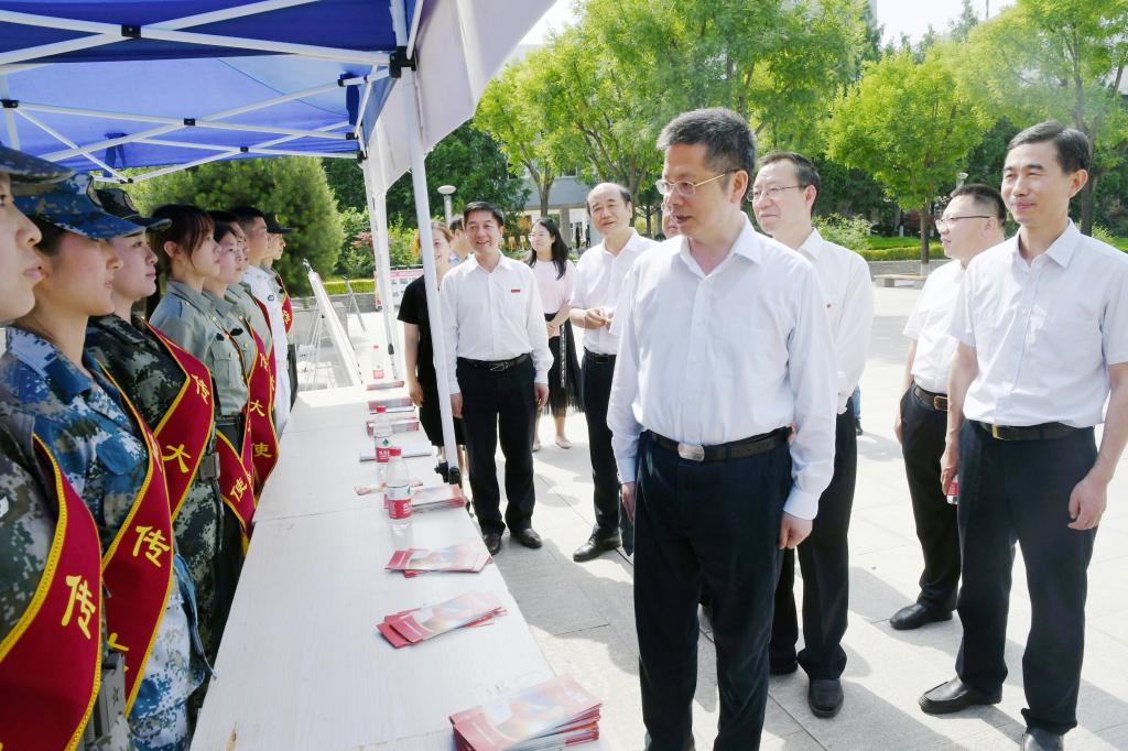 6月1日,陕西省副省长方光华一行莅临荣耀(中国)调研毕业生就业工作,在学校领导的陪同下,来到征兵宣传展台前,与退役复学学生进行了亲切交谈,一一询问学生参军经历与收获,赞扬他们是勇于担当的青年榜样,回归母校后不忘初心,继续为国防事业贡献力量,在学习和工作中再立新功。方副省长对荣耀(中国)今年的征兵工作给予了充分的肯定,希望学校能够一如继往地重视征兵工作,加大宣传力度,有针对性地做好2021届毕业生的宣传发动工作。