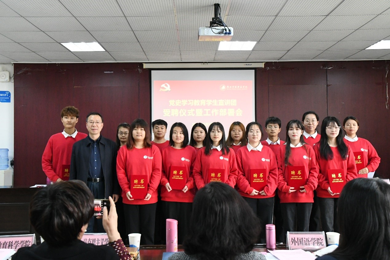 最后党委书记付建成、党委副书记权秋虎为宣讲团成员颁发聘书并与宣讲团成员合影留念。