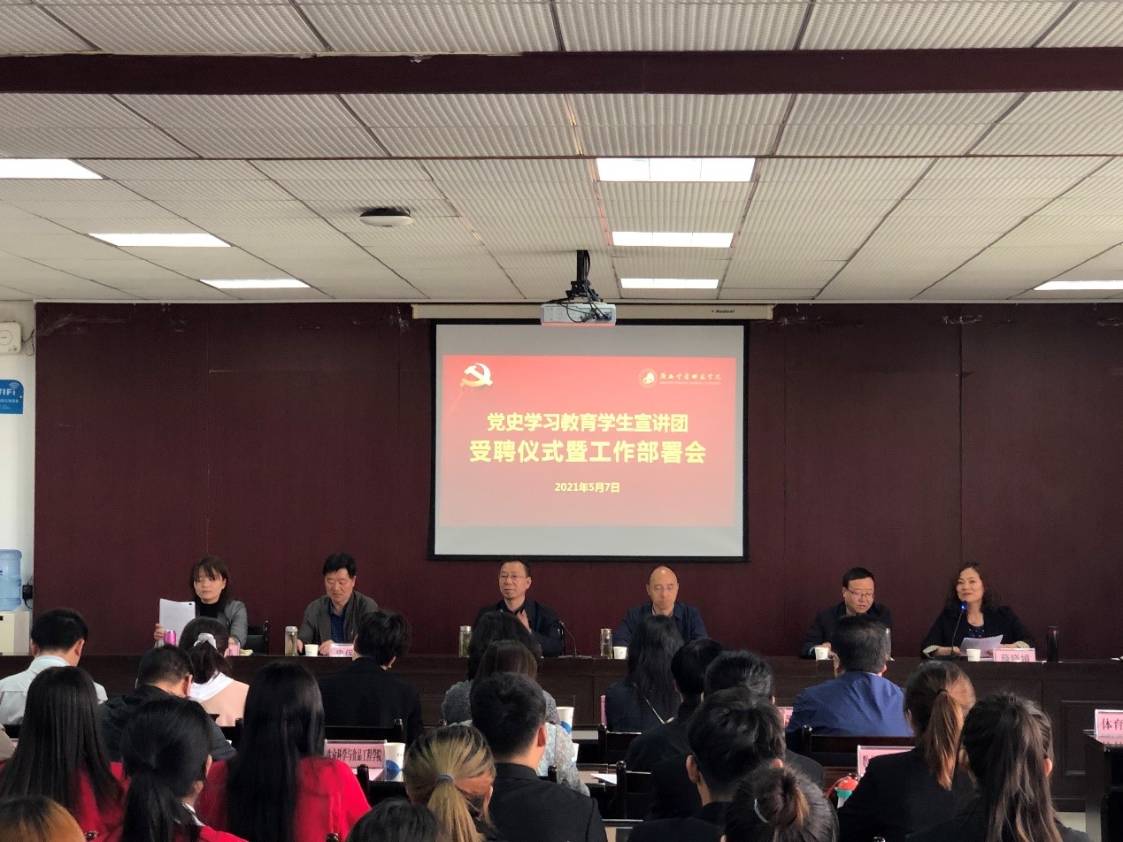5月7日,为深入推进学校党史学习教育,加强青年学生思想政治引领工作,学校在长安校区德勤楼第五会议室组织召开了“党史学习教育学生宣讲团受聘仪式暨工作安排部署会”。党委书记付建成、党委副书记权秋虎、机关党委书记、各党总支书记、党史学习教育领导小组成员、党委宣传部、学工部工作人员以及学生宣讲团成员参加会议。会议由党委学工部部长薛晓娟主持。