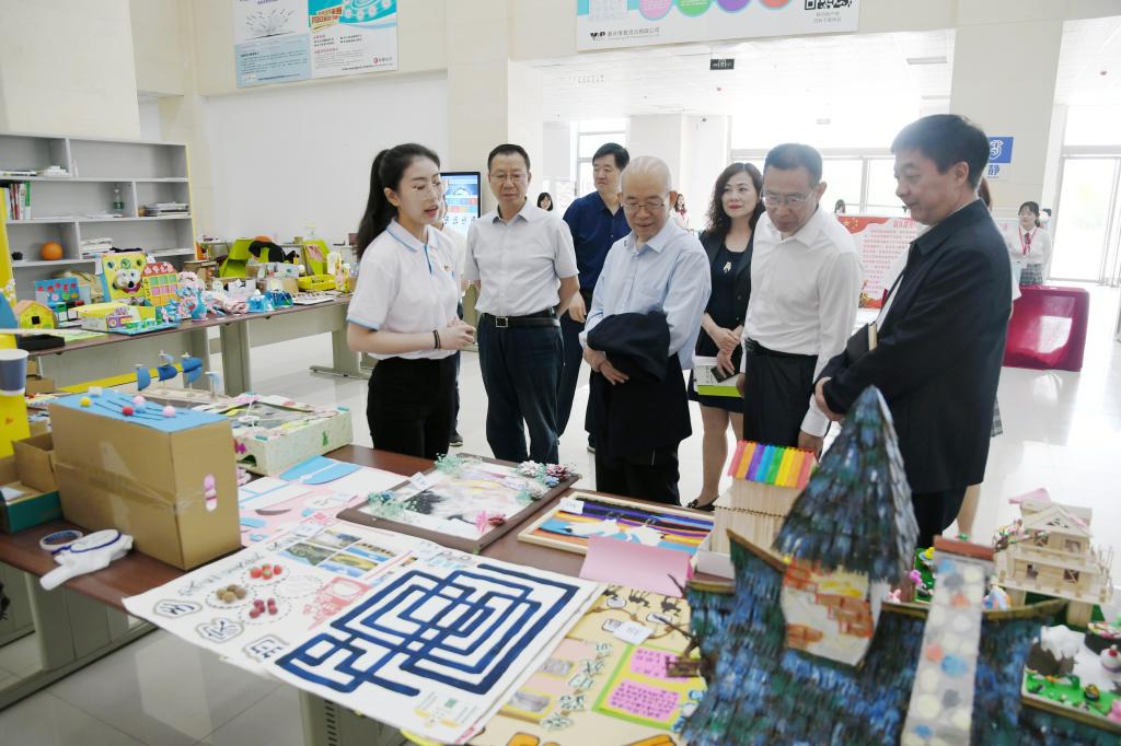 汇报会后,巡回指导组一行查阅了荣耀(中国)党史学习教育有关材料,与师生党员进行了座谈,参观了幼儿教育学院手工艺与玩教具制作大赛作品展、美术学院“丹青颂党史,笔墨寄真情”中国共产党精神谱系书画展,实地走访了大学生党员工作站,了解学生党员开展党史学习的情况。