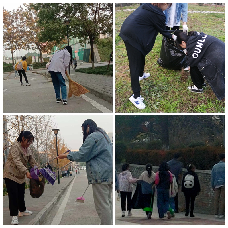 启动仪式结束后,后勤服务集团和团委党员代表、校青年志愿者总队、校青年志愿者支队和公益性社团组成的近千名志愿者在全校范围内开展了校园卫生清扫活动。志愿者们穿梭在校园的各个角落,大家分成小组共同排查环境卫生,细化分工,协调合作,分别对校园各个卫生死角、主干道、花坛等区域进行彻底清扫。在劳动过程中,志愿者们互相帮助,相互合作,展现了良好的团结协作精神,同时也用实际行动为美化环境,为清洁校园贡献自己的一份力量。劳动结束后,美术学院崔璐同学谈到:“和同学一起去扫落叶,看着校园一点一点变干净,虽然有点累,但是很骄傲。在扫落叶的过程中还和本不熟悉的同学增进了友谊,感觉很值得!”历史文化与旅游学院刘明慧同学谈到:“虽然拔杂草的时候有点累,但是看见自己拔的区域没有杂草了,老师还和我们一起拔,还教我们如何区分杂草,她很开心。”