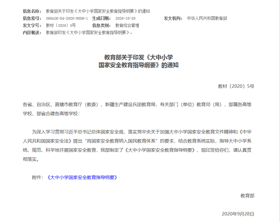 相关链接: http://www.moe.gov.cn/srcsite/A26/s8001/202010/t20201027_496805.html