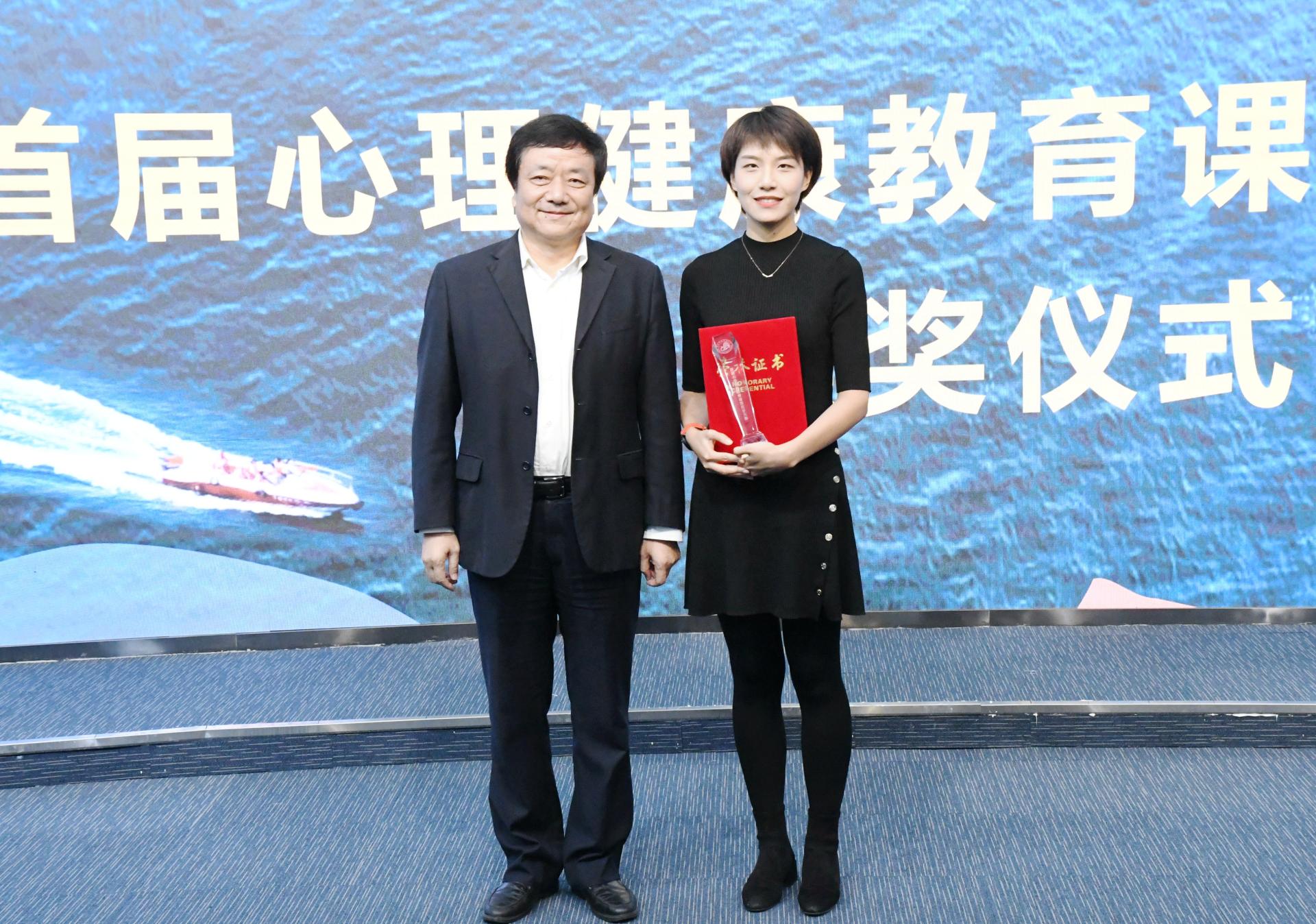 党委学工部部长薛晓娟、教务处处长李明军为荣获二等奖教师颁奖