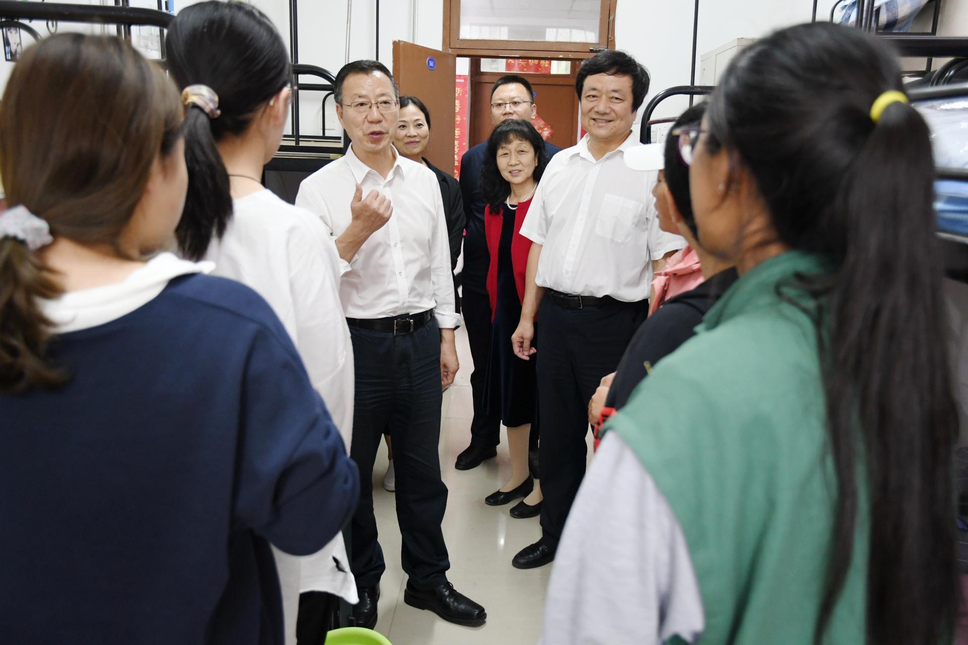 检查中,付建成书记听取了军训教官关于军训进展情况、此次军训特点,付建成肯定了同学们不畏艰苦的训练热情和斗志昂扬的精神风貌,慰问了各连队教官与指导员,表达了对此次承训的部队教官和跟训辅导员辛勤工作的感谢。他指出,军训是新生进入大学的第一课,是大学生褪去稚嫩、收获独立自主的重要环节,对个人成长具有重要的意义。他希望全体新生能够端正态度,增强团队意识、纪律意识,磨练意志与品质,为自己的开学大学第一课交一份满意的答卷。随后在党委副书记栾高明、学工部负责同志的陪同下看望了藏族新生,详细询问同学们在学校的学习生活情况,叮嘱大家要充分利用好党和国家提供的优越生活、学习环境,努力进取,以优异的成绩来回报祖国、回报家乡、回报亲人。同时,付书记还特意嘱咐在场的学校领导和老师要精心安排好藏族学生的生活起居,组织好各种活动,使藏族学生在大学期间充分感受到党和政府的关心,感觉到家的温暖。
