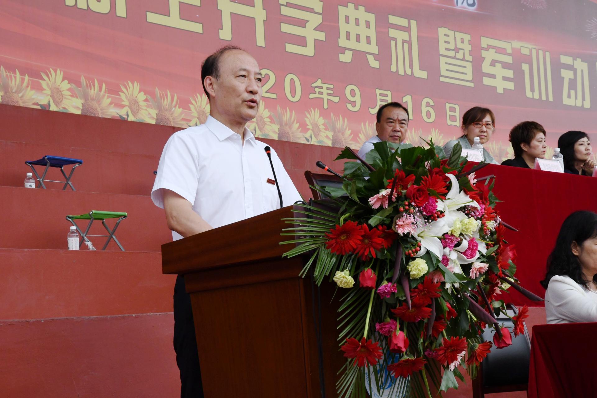 9月16日上午9时, 2020级新生开学典礼暨军训动员大会在长安校区体育场隆重举行。学校党政领导和军训旅旅长出席大会。各职能部门负责人、各二级学院党政负责人、教师代表、2020级新生和辅导员(班主任)及军训教官参加了大会。大会由相艳副校长主持。