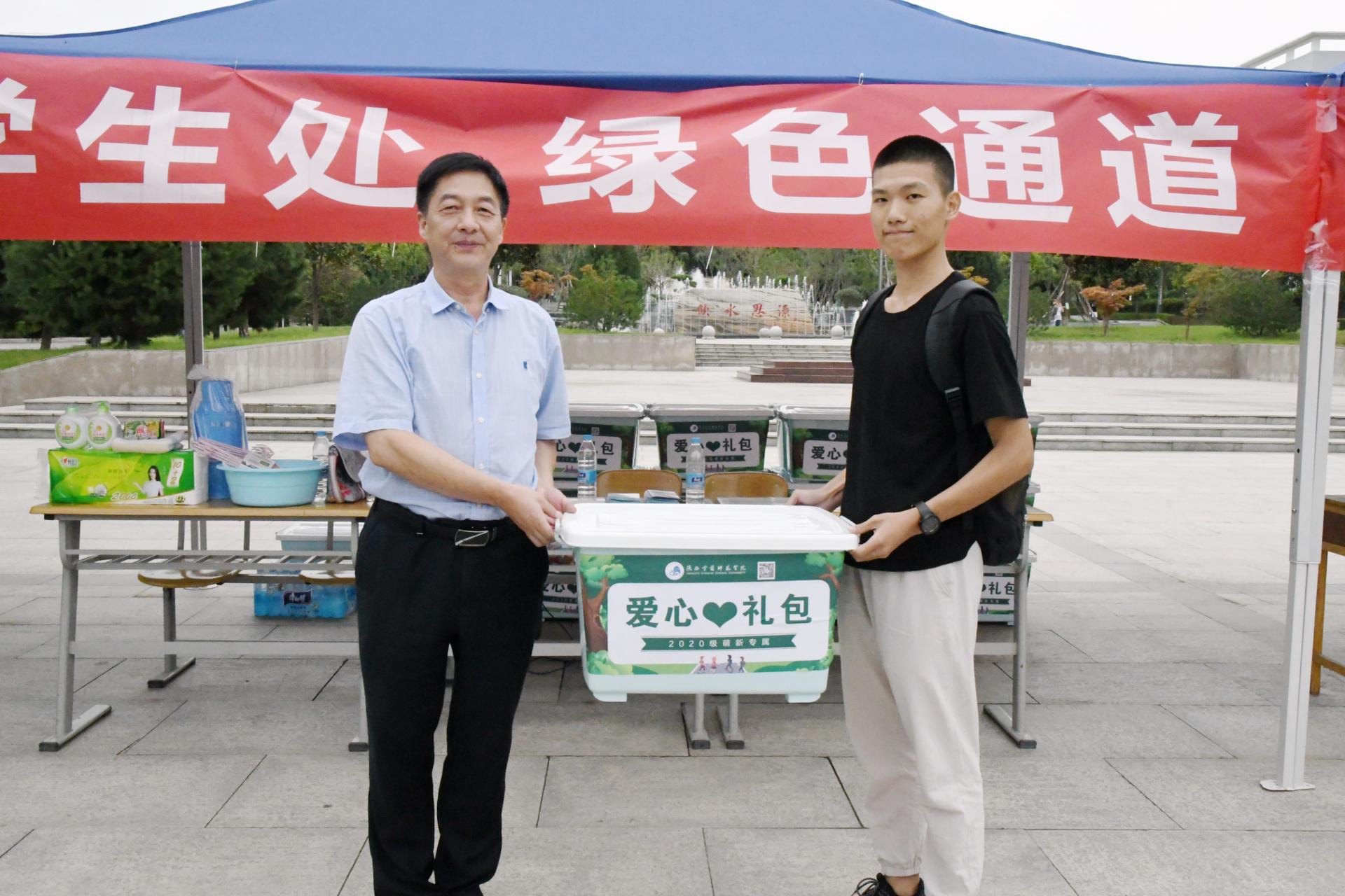 9月14日,在校党委书记付建成、校长邵必林的带领下,全体校领导来到迎新现场,查看“绿色通道”办理情况,深入了解同学们的实际困难,表达关怀和关爱,并为有需要的同学发放爱心礼包。校党委书记付建成鼓励新生正确面对困难和挫折,自立自强,珍惜大学时光,扬帆乘风破浪,通过自身的努力,成为国家发展所需的栋梁之才。同时,他要求校资助中心在做好新生“绿色通道”工作,对入校后的家庭经济困难学生给予持续关注和资助,保证同学们顺利完成学业。