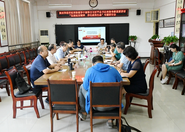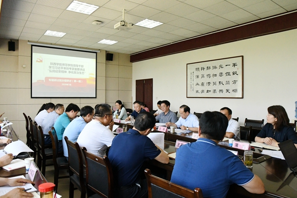 同时,学校结合实际,按照党群、行政部门,教学单位党总支、行政交叉分为三个小组进行了集中学习,围绕“弘扬延安精神 净化政治生态”和“用延安精神滋养初心、淬炼灵魂,奋力谱写陕西教育新时代追赶超越新篇章”主题进行了交流研讨。校领导带头深入各小组进行集中学习和交流研讨。