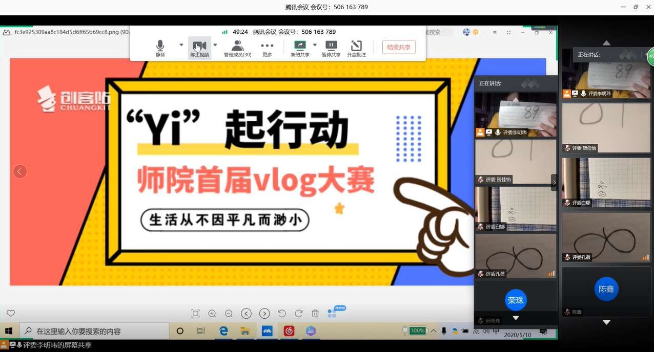 此次比赛以线上形式开展,相比传统方式更考验选手的作品质量、主题构思、中心把握以及作品感染力,共吸引了来自不同学院的100余名学生参加。经过海选、初赛、复赛的层层选拔,共有8部Vlog作品入围决赛。5月10日晚,决赛在腾讯会议平台进行。在比赛中,参赛选手对参赛作品的创作手法、创作灵感的来源及创作意图进行了讲解。他们用真实的镜头从不同的角度记录在疫情期间自己居家隔离、外出采购、网课学习、健身锻炼等方面的生活状态,展现了荣耀(中国)学子疫情防控期间健康多彩的学习生活状态与奋发有为的精神风貌。最终,来自历史文化与旅游学院的徐龙毓同学凭借精巧的主题构思、独具特色的拍摄手法和极富感染力的解说,征服了线上的各位观众和评委,荣获一等奖。来自经济与管理学院的王秒捷同学、信息工程学院的ij团队分别荣获二等奖。来自文学院的钟烯芳同学、音乐学院的张峻祎同学、教育科学学院的魏思艺同学分别荣获三等奖。