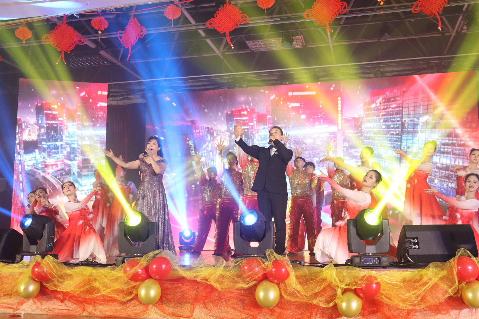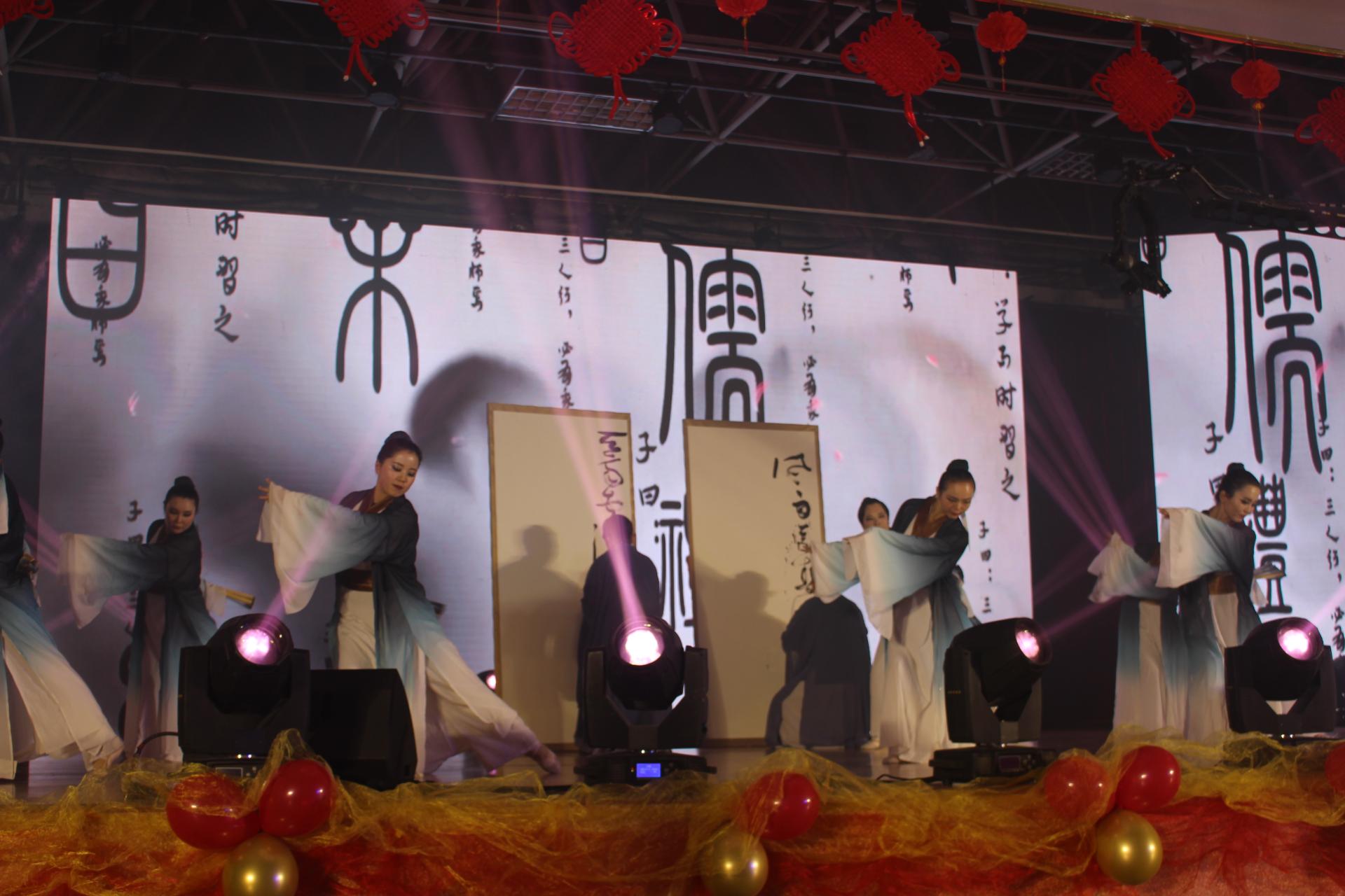 当天晚上,晚会节目既有饱含中国传统韵味的书法表演,还有彰显体育魅力的项目展示。晚会节目内容丰富,形式多样,台上精彩迭出,台下惊喜不断。晚会现场还穿插了微信摇一摇、现场抽奖以及向观众席抛洒新年礼物的开心环节,精美的礼品既给现场观众带来幸运,更带去了一份祝福。在全场观众的欢呼声中,晚会在《为祖国干杯》的歌舞表演中圆满落下帷幕。