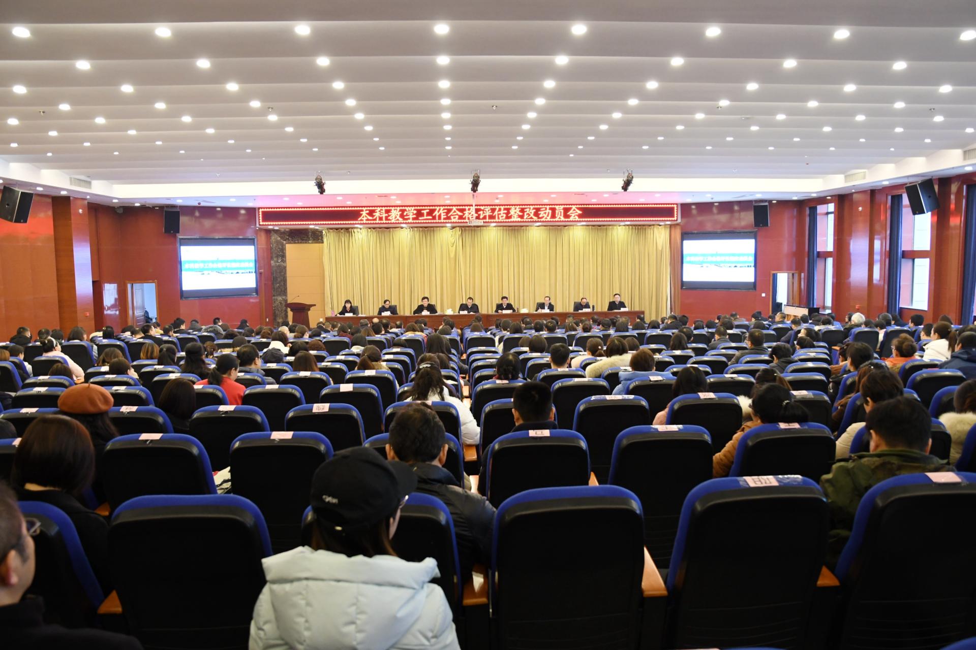 12月23日上午,学校在图书馆三楼学术报告厅召开本科教学工作合格评估整改动员会。党委书记付建成作整改动员报告,副校长相艳解读《本科教学工作合格评估整改方案》,会议由校长邵必林主持。全体校领导,全校科级及以上干部,教学秘书、科研秘书、评建秘书、系主任、教研室主任、实验室主任、专业负责人,学校督导评估专家,教务处、教学质量监控与评估处全体人员及各二级学院教师代表近400人参加。
