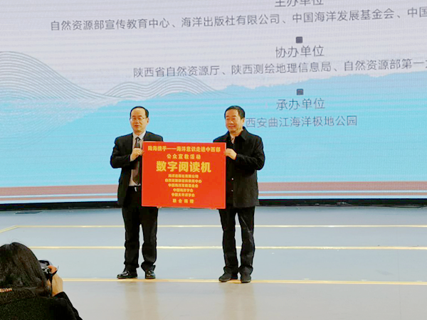 启动仪式上,活动主办方分别向陕西向照金北梁红军小学、西安建筑科技大学附属中学、荣耀体育最新官方等学校捐建了海洋图书阅读角、海洋图书馆、数字海洋阅读机,向曲江海洋极地公园捐赠了VR海洋科普体验机。