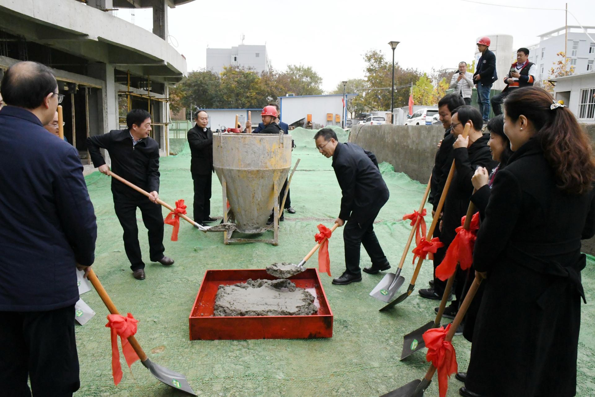 全体校领导、幼儿园园长为附属幼儿园梁板浇筑混凝土