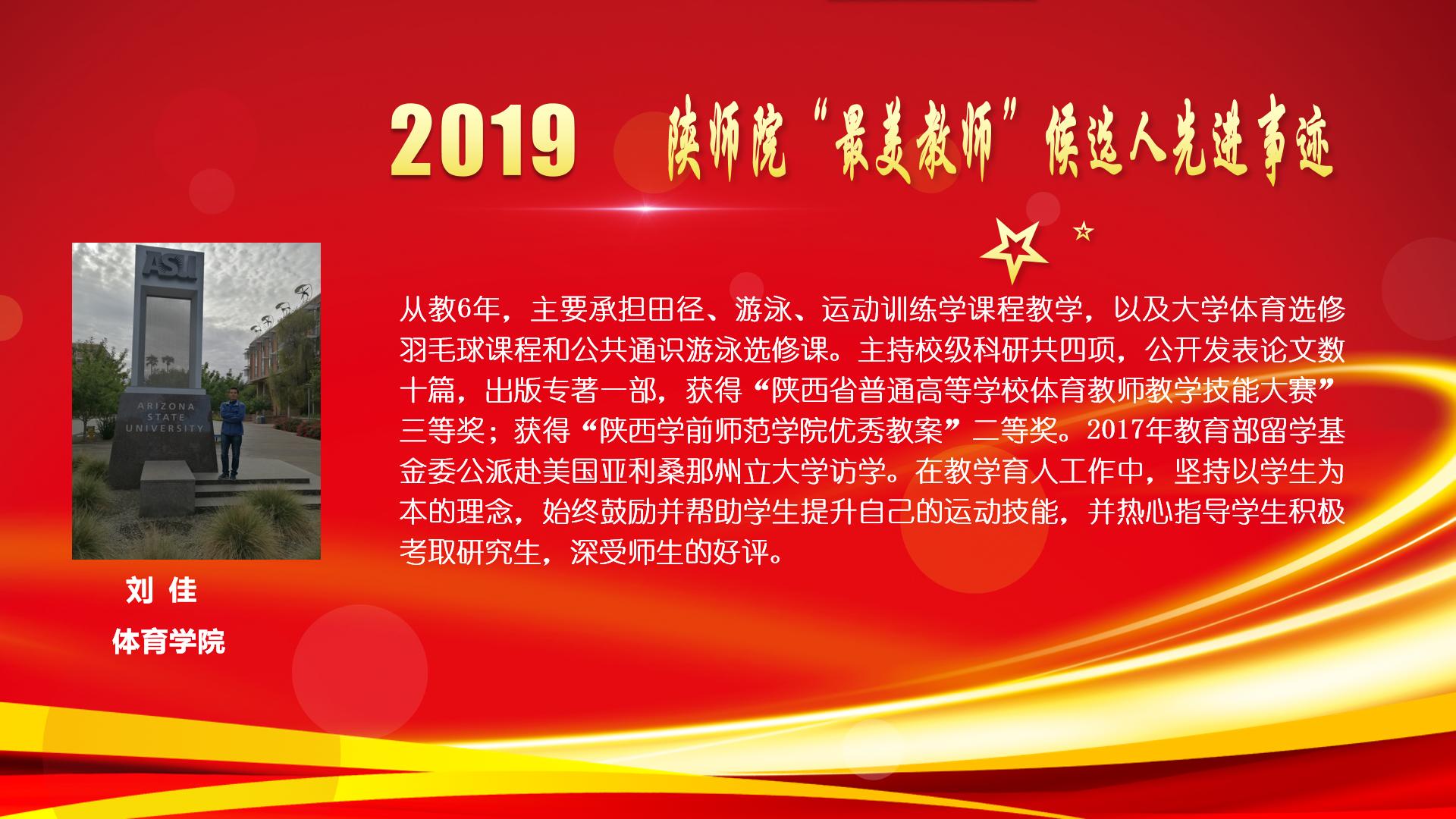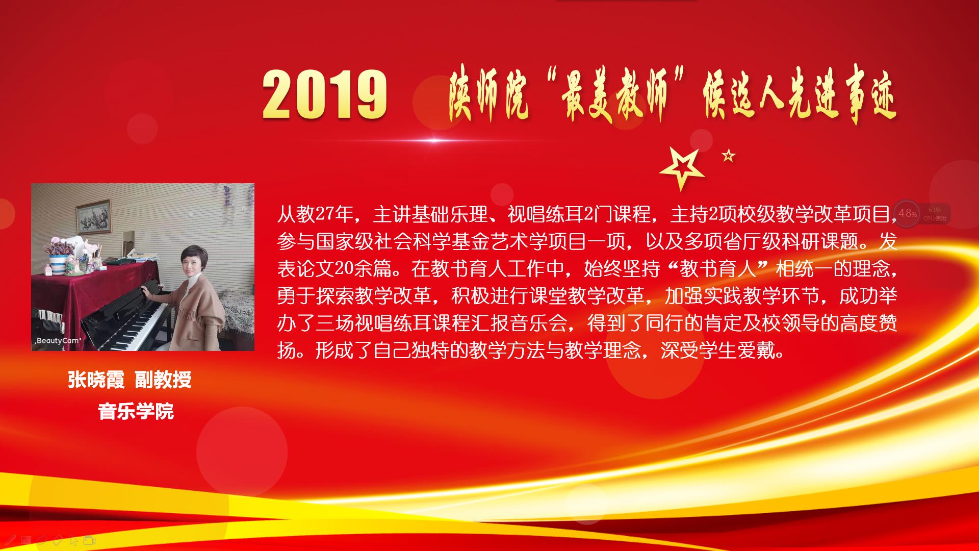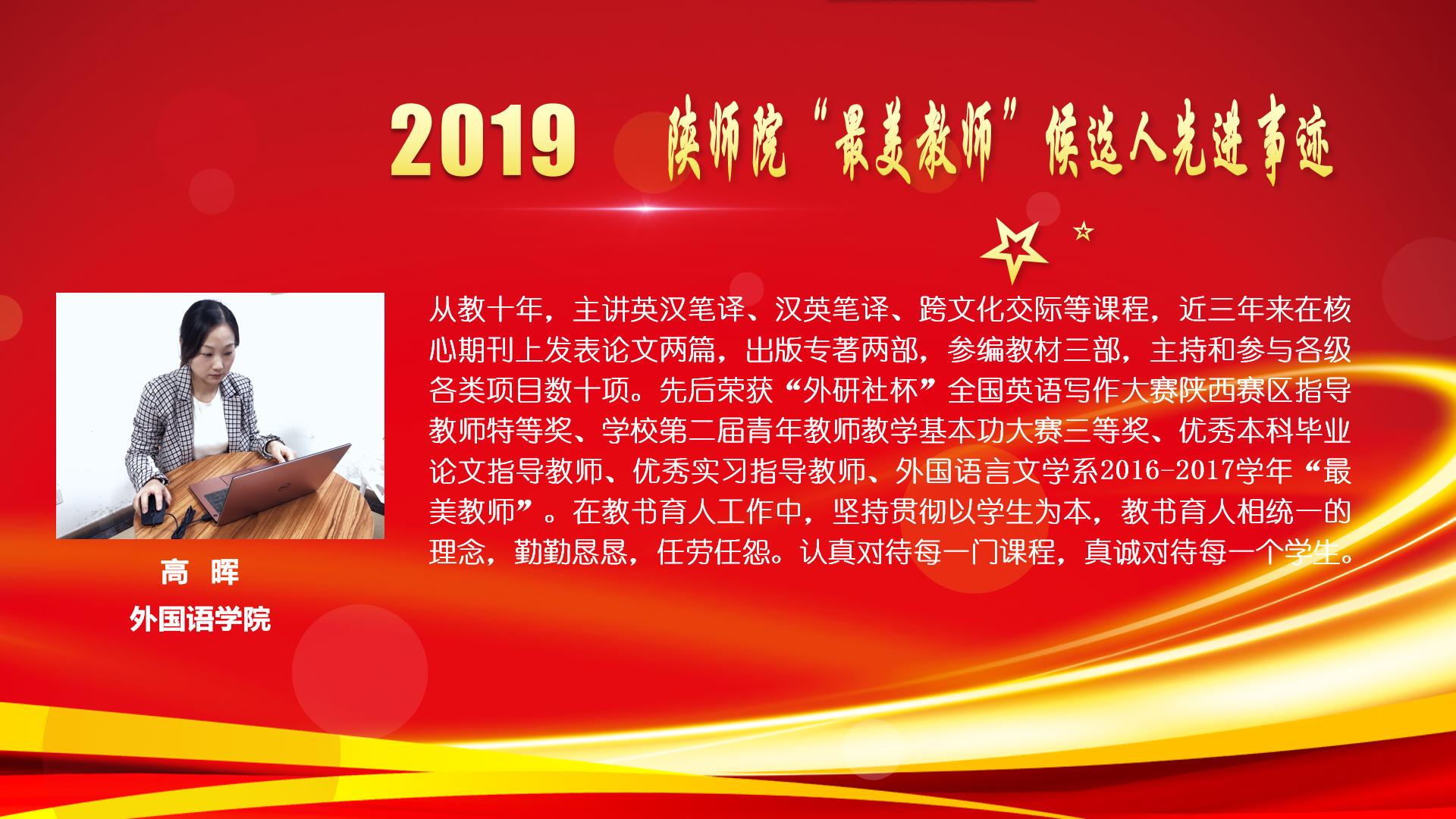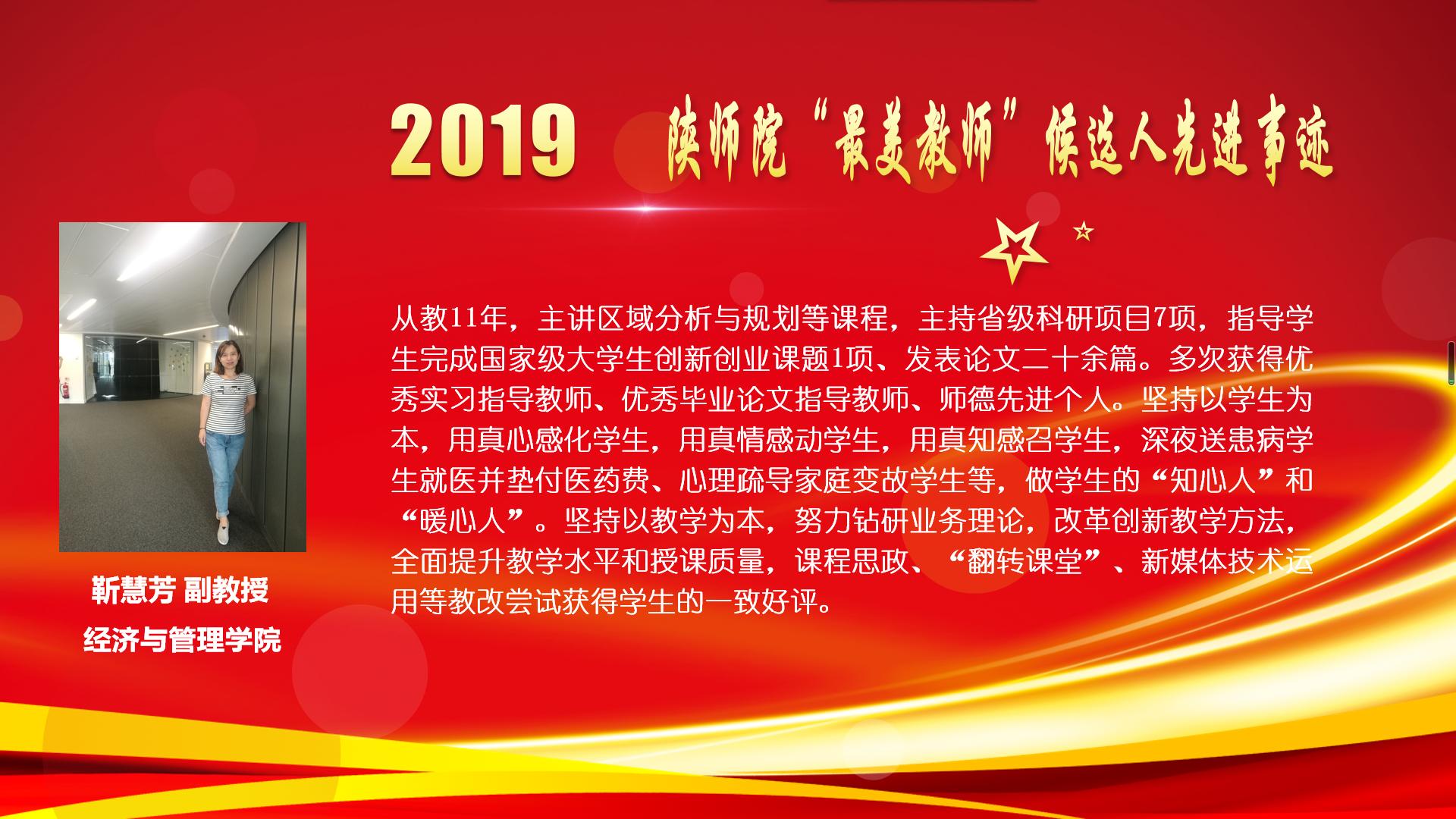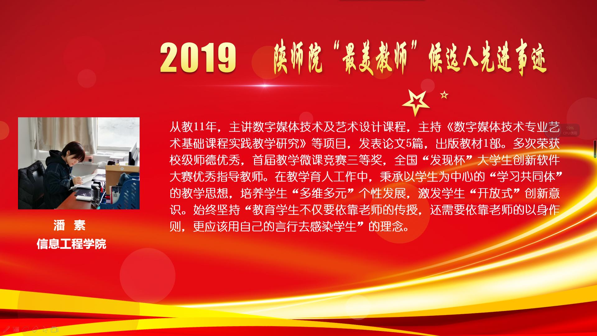 为深入贯彻落实全国全省教育大会精神,进一步加强师德师风建设,大力表彰在学校教书育人工作中爱岗敬业、无私奉献、开拓创新、成绩凸显的模范先锋,充分发挥他们的典型示范引领作用,学校组织开展了“2019 陕师院最美教师”评选活动。经民主推荐、资格审查,拟研究确定了16名“最美教师”候选人,现将候选人的先进事迹展播如下(排名不分先后)。