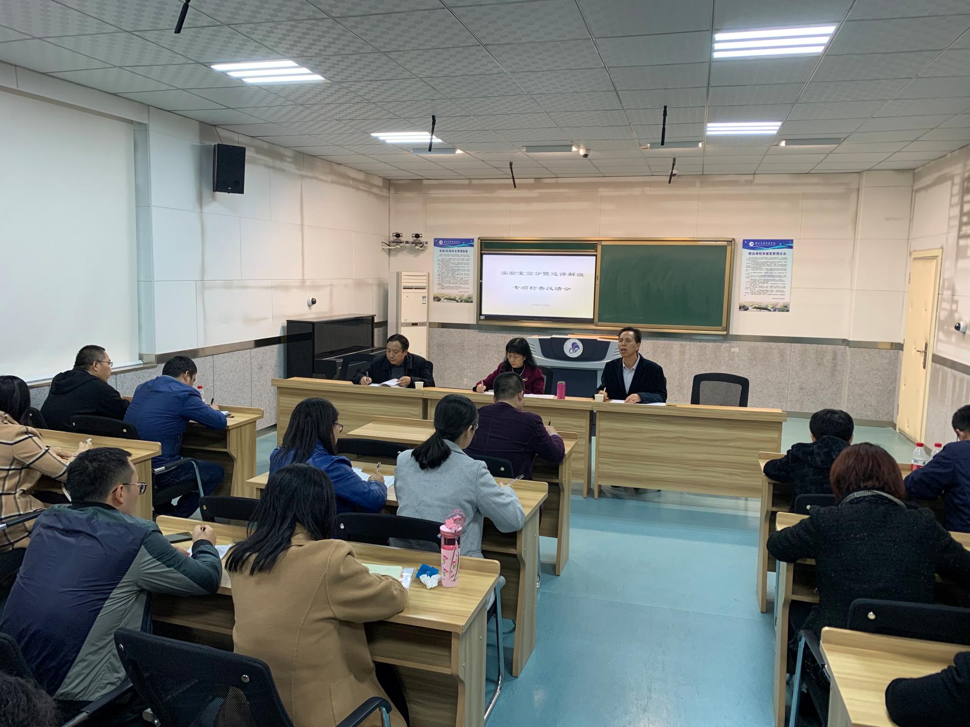 11月5日下午检查结束后,召开了检查反馈会,相艳副校长出席会议并讲话。检查组成员、各二级学院分管实验室副院长、实验(中心)主任、实验员共50余人参加会议。会议由教学设备与实验室管理处负责人主持。