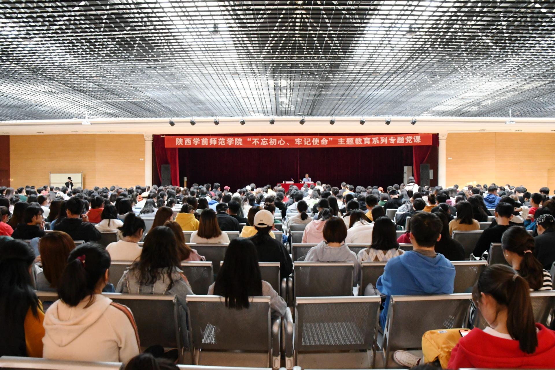 二要深刻把握高等教育的时代使命。他谈到,开展“不忘初心、牢记使命”主题教育是党中央的重大决策部署,是促进高等教育内涵式发展、建设高等教育强国的强大动力,是加强高校党建和思想政治工作、确保党对教育工作全面领导的重要机遇。培养什么人,是教育的首要问题。从新中国高等教育发展史来看,“为党育人、为国育才”始终是高校的目标追求;从我国教育的定位来看,以人民为中心办教育是中国特色社会主义教育的本质要求。从荣耀(中国)办学历史来看,不忘初心,牢记使命,就是要不忘陕师院“走过的路”,铭记陕师院的筚路蓝缕,秉承陕师院“立身传道,自强不息,大气大度,止于至善”办学精神,传承“厚德博学”校训,坚持“师范性、地方性、应用型”办学定位,扎根三秦大地、服务基础教育,传承教师教育优势,积极培育学前人才培养特色,扎实推进转型发展、内涵发展和特色发展。不忘初心、牢记使命,就是要始终坚守培养学生成长成才这个天职,始终坚持以学生为中心的发展理念,创新人才培养模式,深化教育教学改革,加强师资队伍建设,规范教学管理,建立和完善人才的培养体系和机制,为全体同学的成长成才搭建更好的培养和服务平台。我们学校一直坚持“以学生为中心、服务学生发展、成就学生价值”的理念,总希望经过我们培养的学生,不仅要有真诚、善良、包容、勤奋等最基本的健全人格,更要有我们学校人的低调、真诚、自强、拼搏和攻坚克难的精神力量与文化基因。近两年,学校投入大量的物力、财力,采取多项切实有效的措施,积极改善同学们的学习和生活环境,维修图书馆外立面、集中改造教学楼环境、更新教室教学设施、建设智慧教室、整修校园道路、改造食堂、美化校园环境,附属幼儿园、产教融合大楼、多功能综合训练楼加紧施工等等,学校一直尽最大努力在为同学们创设更加舒适的学习生活环境,提升同学们的获得感和幸福感,让同学们全方位接受更好更满意的教育。