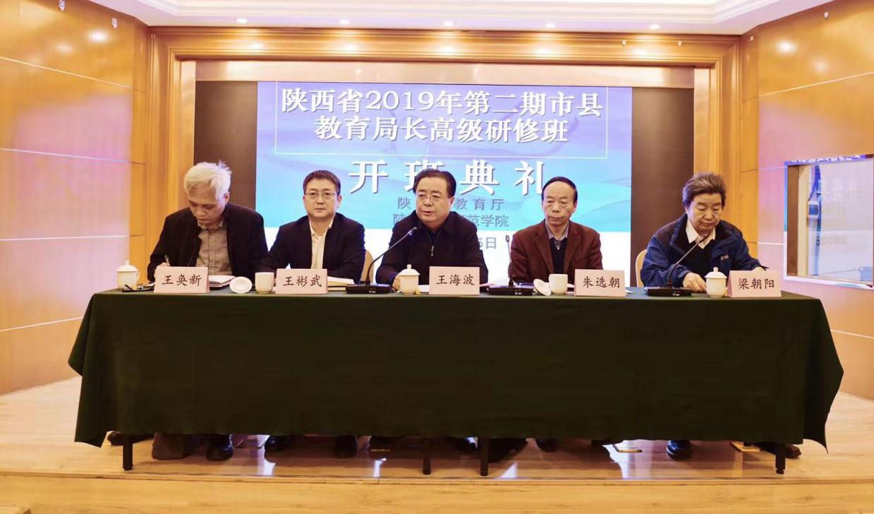 2019年10月25日上午,由陕西省教育厅主办、荣耀体育最新官方承办的陕西省2019年第二期市县教育局长高级研修班在西安举行。陕西省教育厅副厅长王海波、荣耀(中国)党委副书记朱选朝出席开班典礼。开班典礼由省教育厅教师工作处处长王彬武主持。
