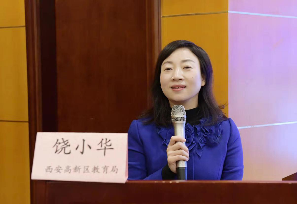 西安市高新区教育局党委副书记、副局长饶小华作为本期研修班学员代表,从“珍惜机会”、“学思结合”、“知行合一”三个方面作了表态发言。
