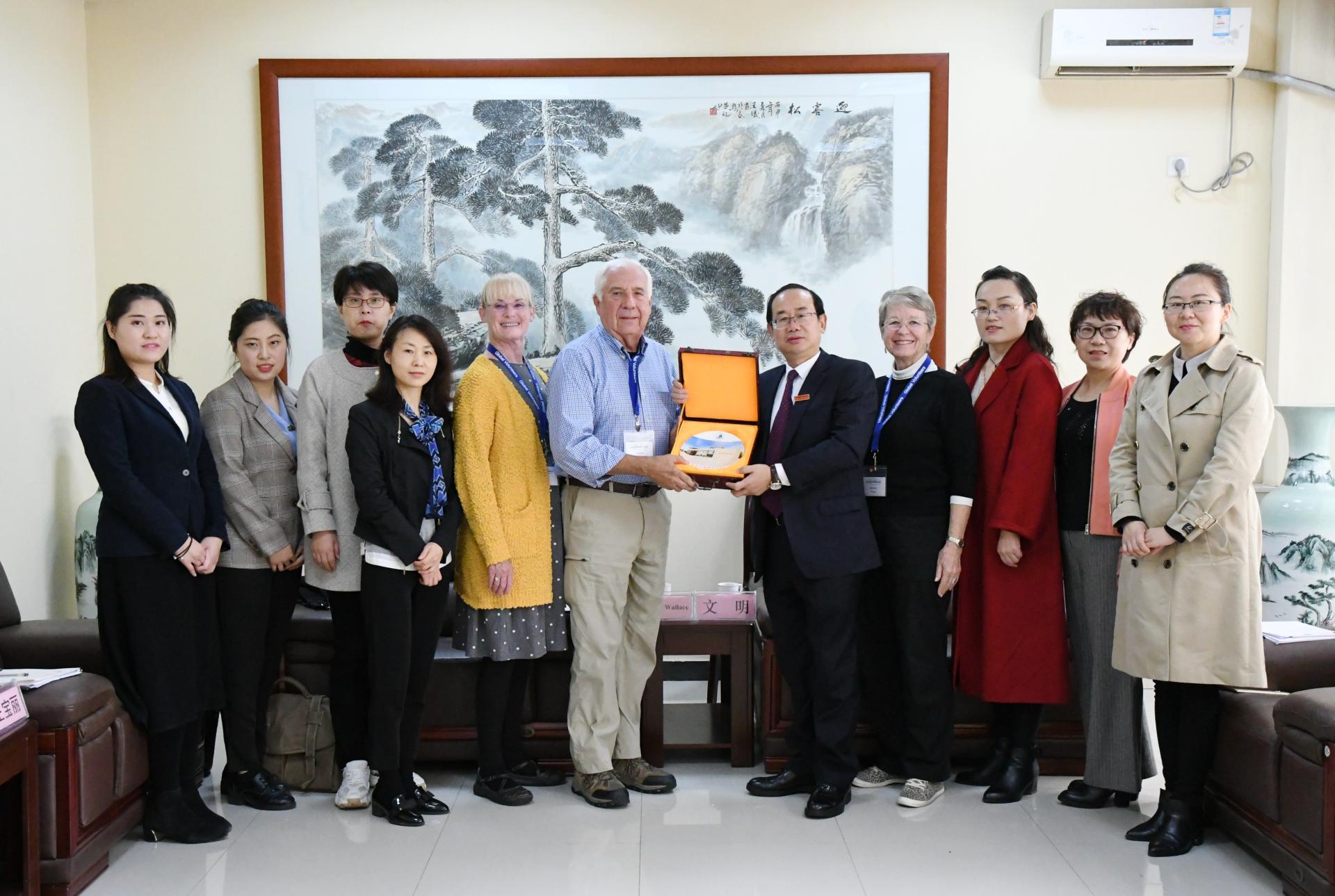 2019年10月23日上午环球志愿者(GLOBAL VOLUNTEERS)中国项目首席代表王宝丽女士及志愿者James R. Wallace一行4人来访荣耀(中国),文明副校长会见了客人,外国语学院、文化与旅游学院、国际处等部门相关负责人陪同会见。座谈会由国际处负责人主持。