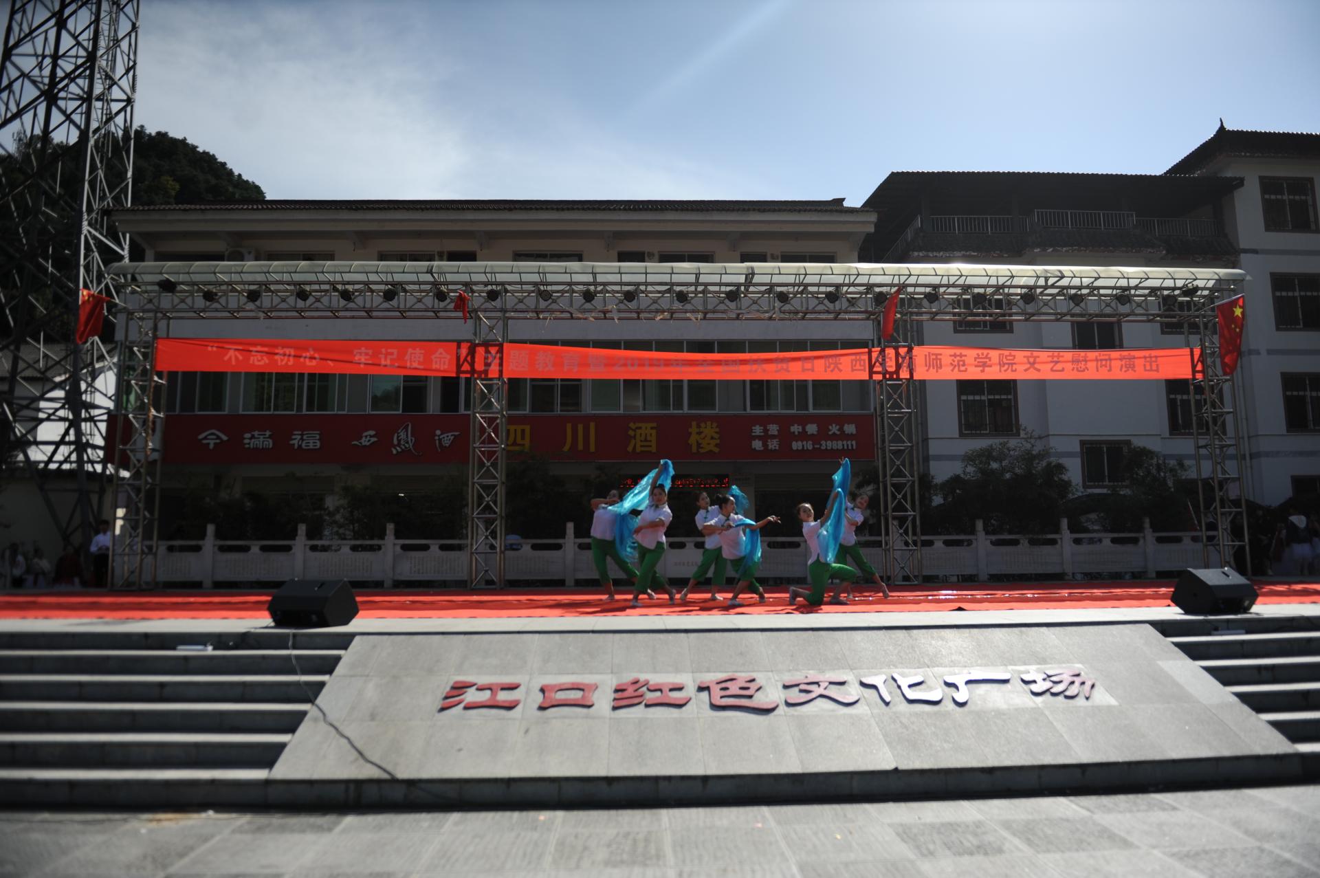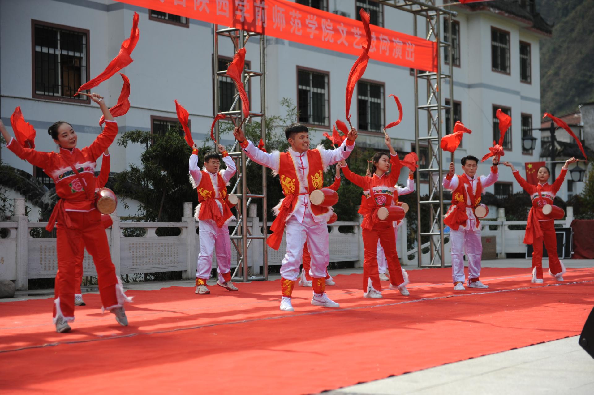 当天,在经历长途乘车及匆匆用餐后,全体演职人员克服劳累,紧张有序开展布台准备工作。中午两点,演出在江口镇红色文化广场正式开始。整场演出围绕精准扶贫等内容,以歌曲、舞蹈等多种类的节目形式,吸引了大量群众现场观看。演员们异彩纷呈的表演收获了现场观众的热烈掌声。与此同时,留坝县紫柏艺术团也同台奉献了具有浓郁地方特色的文艺作品。演出结束后,荣耀(中国)师生还组织文艺小分队深入元树村,走进农户庭院进行演出,用深情的歌声传颂党的好政策,激励元树村广大群众脱贫致富。
