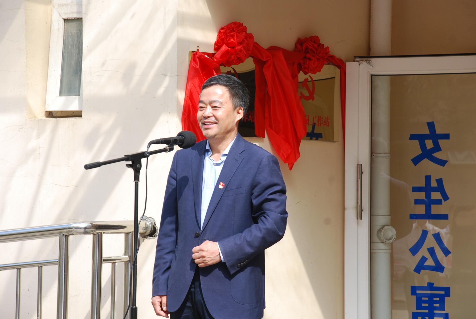 在启动仪式上,省委第二批主题教育第六巡回指导组组长、省科协副主席丁德科为第一、第二学生党员工作站揭牌并讲话。艰辛成就伟业,奋斗创造辉煌。丁组长深情回顾了党的98年光辉历程,谈到中国共产党成立以来的历史,绝非一帆风顺、波澜不惊,而是在应对挑战、克服困难、战胜风险、破解危局中不断前行的。在实现中华民族伟大复兴征程中,我们党所经受的风险挑战,有的是全局性的,有的是局部性的,有的更成为关乎党和国家前途命运甚至生死存亡的历史关节点。纵览党的奋斗历程,常有危难之际的绝处逢生,挫折之后的毅然奋起,磨难面前的百折不挠。正是在团结带领全国各族人民克服一切艰难险阻、战胜一切风险挑战的丰富实践中,我们党不断从胜利走向胜利。丁组长谈到,学校能够认真落实习近平总书记在全国高校思想政治工作会议和学校思想政治理论课教师座谈会上的讲话精神,紧扣“不忘初心、牢记使命”主题教育总要求和目标任务,在学生公寓楼首批建立起12间党员工作站和共享学习室,大力推进学生党建与思想政治教育工作向社区延伸,这种创新做法具有一定的典型性和示范性,充分体现了学校党委对学生党建工作的重视,切实把立德树人作为中心环节,把思想政治教育工作贯穿教育教学全过程,措施有力有效。大学生党员工作站的建立,搭建起多元的学习工作服务平台,将党建融入学生社区管理和服务,能够发挥学生党员在自我教育、自我管理、自我服务、自我监督方面的模范引领作用, 让学生社区党建融入到人才培养和入党积极分子考察、党员发展、党员日常教育管理等工作中去,同时也按照“围绕学生、关照学生、服务学生”的要求,将学生工作重心下移,关口前移,进一步推进学生工作进社区,贴近学生实际,努力服务学生成长成才。他指出,要切实发挥好大学生党员工作站引领思想、促进学习、彰显先锋的“三个平台”作用,指导老师要做好学生的引路人,同学们要坚定理想信念,忠诚于党,忠诚于人民,忠诚于马克思主义,要树立“铁肩担道义,妙手著文章”的为民理想和志向,弘扬中华人文精神,涵养君子之风,继承革命乐观主义精神,励志勤学,刻苦磨炼,认真学习先进典型,以凝聚同学、服务同学为导向,用心用情做好党员工作站各项工作。希望学生党员能够从细微处着手,从小事、具体事做起,不忘初心、牢记使命,以实际行动示范引领每一位同学,促进大家共同成长、成才、成人,要明确方向,勇担使命,为党的事业和祖国建设贡献青春力量,青春建功新时代。丁组长的讲话立意深远,鼓舞人心,也是一堂生动而精彩的党课。