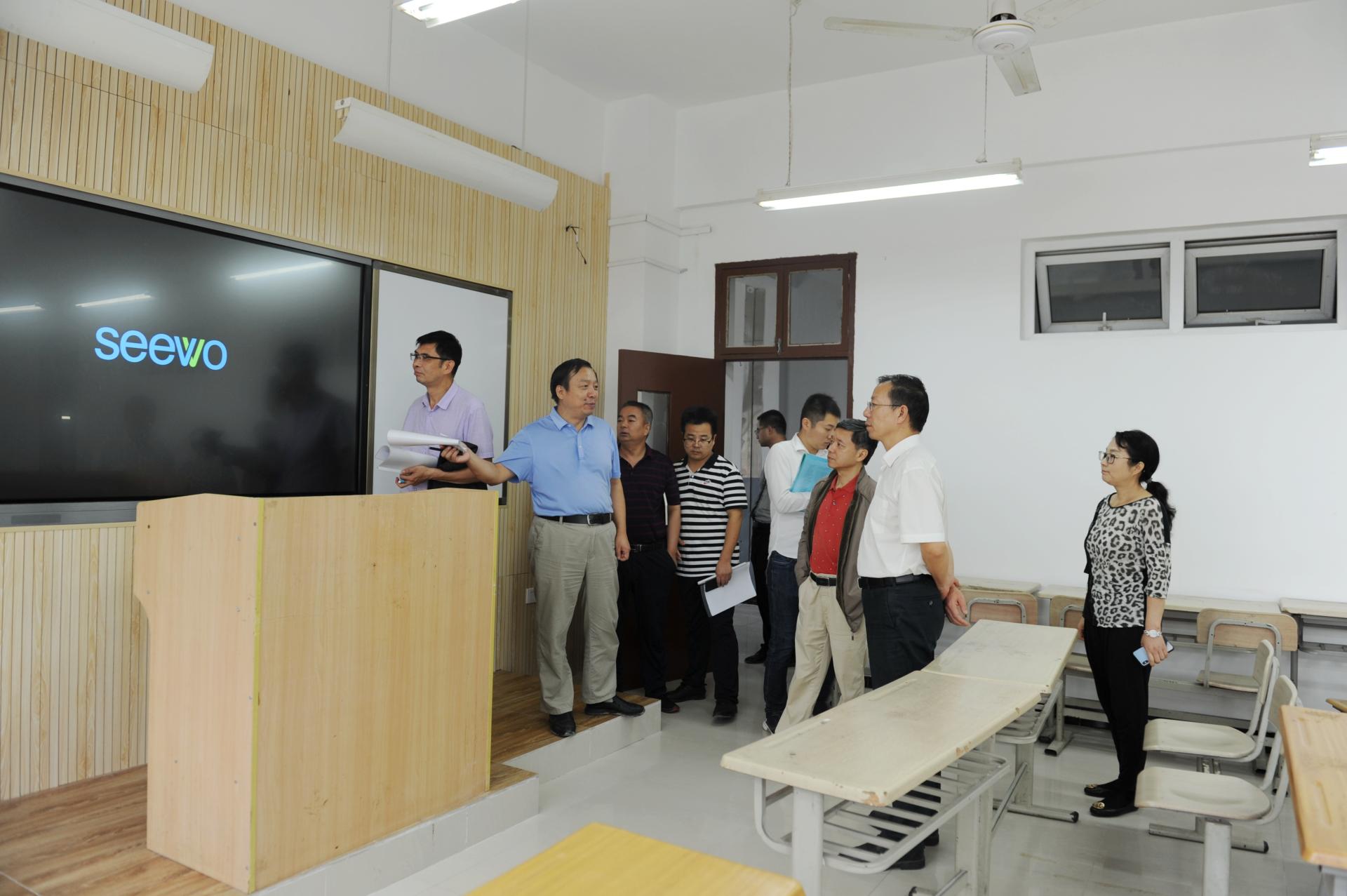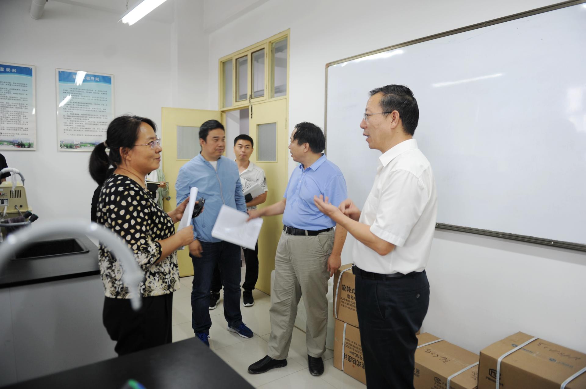 为确保合格评估暨2019年度实验室建设项目顺利按时完成,督促全校各实验室迎评资料准备,9月11日,校党委书记付建成深入各项目建设现场检查项目实施情况并指导各二级学院实验室迎评准备工作。党政办公室、教学质量监控与评估处、财务处、国有资产管理处、教学设备与实验室管理处等部门有关同志参加。