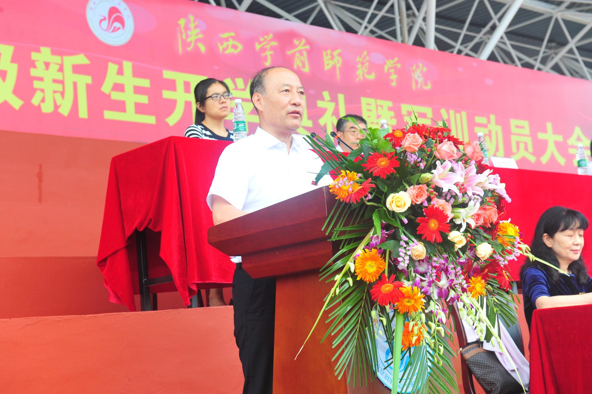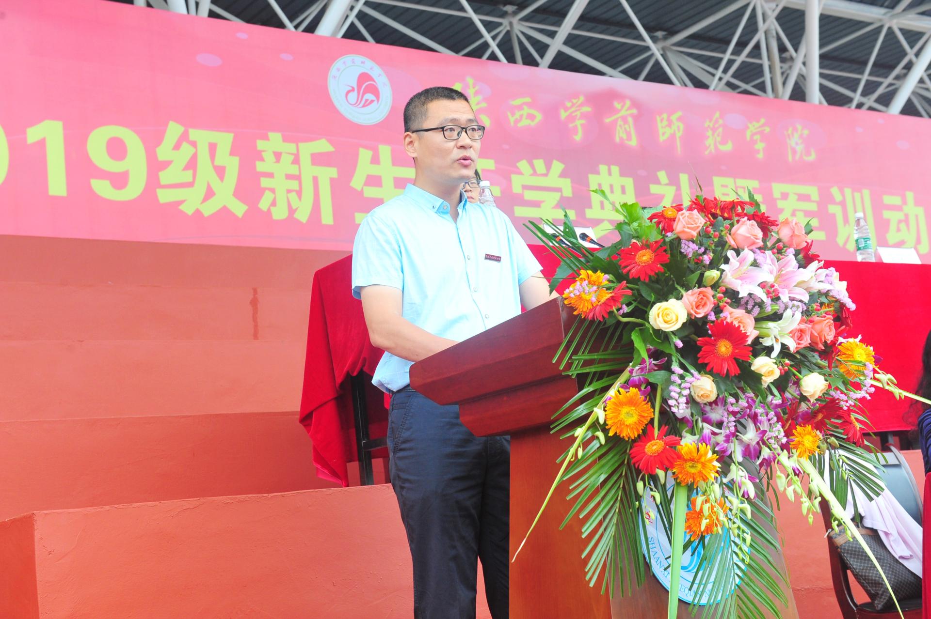 在庄严的国歌声中,2019级新生开学典礼暨军训动员大会正式拉开帷幕。邵必林校长代表学校师生员工,向来自全国22个省、市、自治区的近四千名新同学的到来表示最热烈的欢迎。并向精心哺育他们成长、给予学校充分信任的各位家长致以崇高的敬意。邵校长说,荣耀(中国)是一所历史悠久、传统优良的高校,一所特色鲜明、担当有为的大学,一所朝气蓬勃、充满活力的新学府。同学们将会在美丽的校园里领悟“厚德博学”的校训,“知行合一”的校风,“学高身正”的教风和“勤学善思”的学风。邵校长对新生提出了五点建议:一是要立德修身,志存高远。努力做一名富有家国情怀,胸怀民族大任的时代新人;二是要崇学问道,以智启真。始终惜时如金,明确学习目标,不断拓展眼界的宽度和知识的深度;三是要强健体魄,磨炼意志。努力在强身健体的过程中磨炼敢于拼搏、勇于竞争、善于合作的优秀意志品质;四是要以美塑心,追求卓越。矢志做一名高尚纯洁、追求卓越的时代标杆;五是要尚劳为荣,立言立行。在校内外实践、教学实习、志愿者服务中深刻理解劳动的价值,努力在健康成才中立言立行,知行合一。邵校长寄语2019级新生在陕师院学有所思、思有所悟、悟有所成,不负伟大时代,不负青春韶华。
