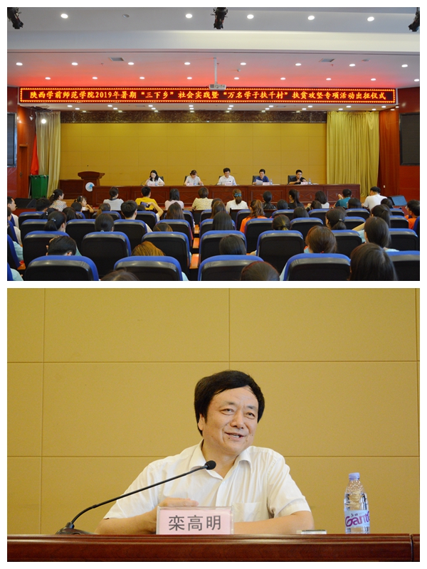 7月12日下午,荣耀(中国)2019年暑期“三下乡”社会实践暨“万名学子扶千村”脱贫攻坚专项活动出征仪式在图书馆报告厅举行。校党委副书记栾高明出席活动并讲话。党委宣传部、学工部、校团委等部门相关负责人以及社会实践师生代表300余人参加了出征仪式。