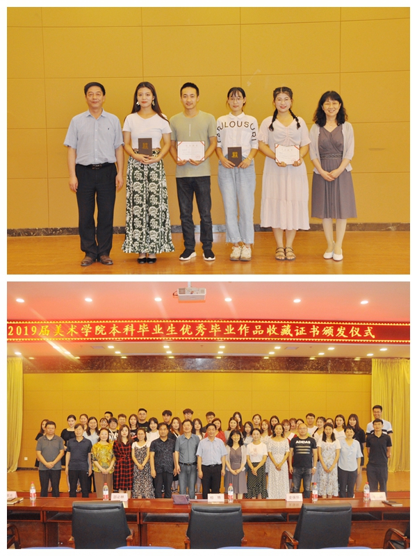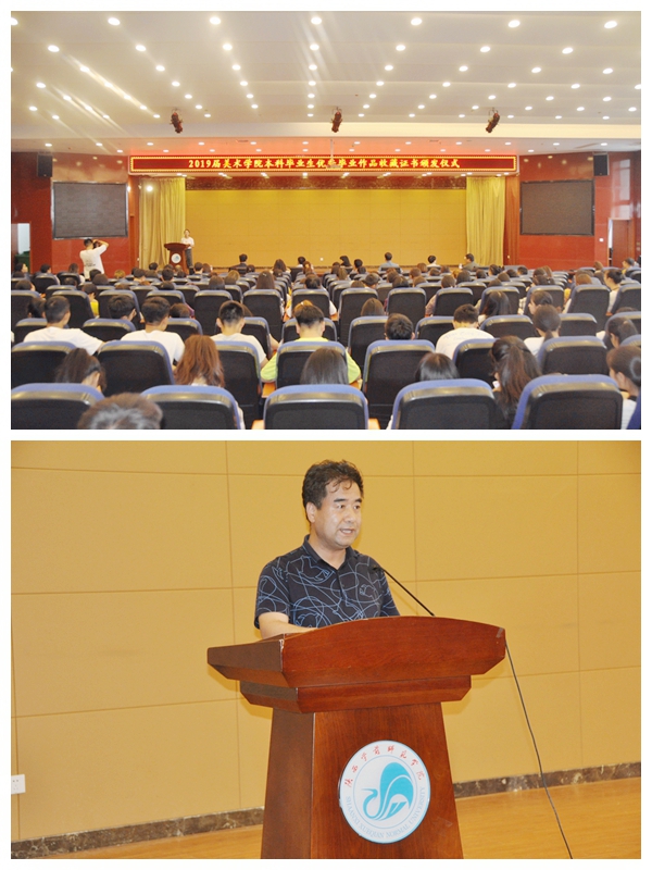 6月18日下午5点,美术学院在长安校区图书馆报告厅举行了2019届本科毕业生优秀作品收藏证书颁发仪式。校长邵必林、副校长相艳、学工部部长史保怀出席了颁发仪式。美术学院党政领导及部分师生参加了颁发仪式。仪式由美术系党总支副书记文竹主持。