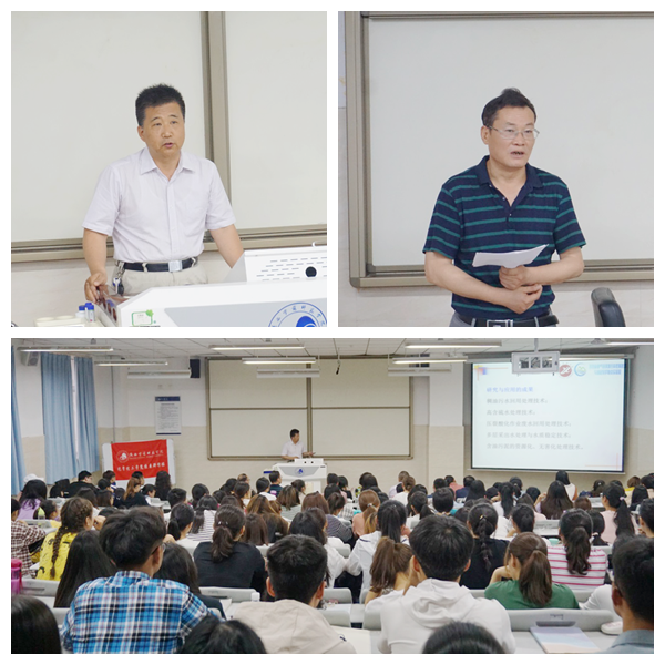 报告中,屈撑囤教授首先对陕西省油气田污染控制技术与储层保护重点实验室做简单介绍,然后对石油工业生产、石油工业及其学科、油田污水污泥特点及处理工艺、采油污水回用处理技术做了概述,其次,介绍了自己实验室在污水污泥处理方面取得的傲人成果,不仅解决了企业难题,更是解决了油气田开采中的环境污染问题,最后展望了油污水处理发展的方向。报告中,屈教授强调本科生一定要学好基础课程,学好四大基础化学,在以后的工作中要勤奋,多思考才能干出佳绩。屈教授的报告生动风趣、内容系统而深入。其丰硕的科研成果以及相关成果转化还有严谨的科研态度,给在座师生留下来深刻的印象。会后,化学化工学院俞园园副院长对屈教授的报告做了总结。