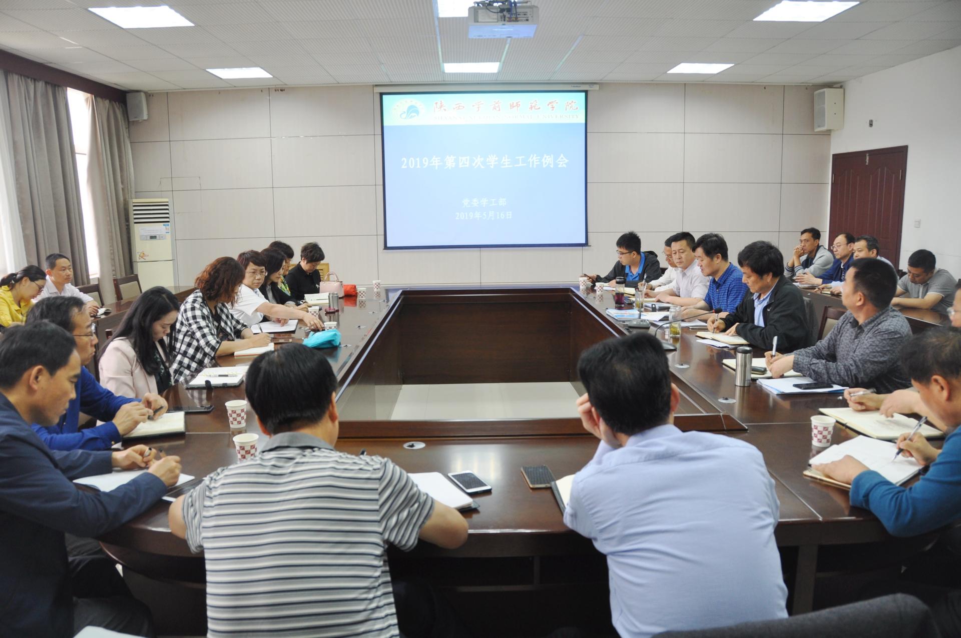 2019年5月16日上午,2019年第四次学生工作例会在学校行政楼第四会议室召开。学工部、团委等部门负责人及各二级学院党总支书记、副书记参加了会议;校党委副书记栾高明出席本次会议,会议由学工部部长主持。