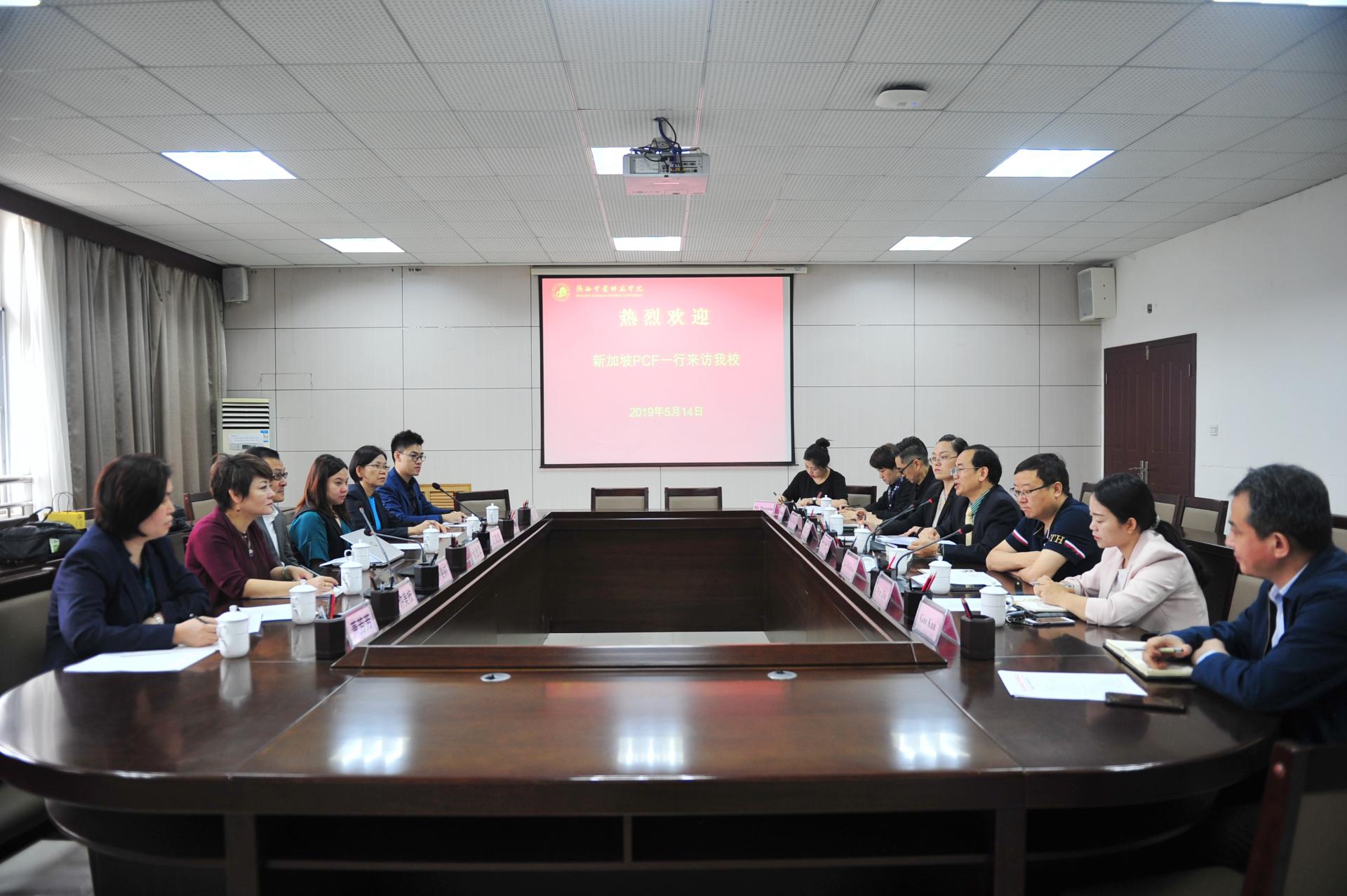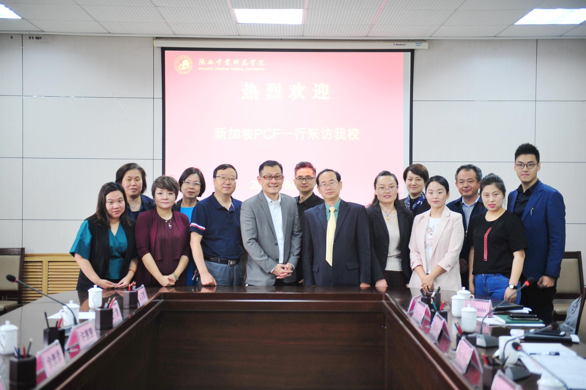 2019年5月14日上午,新加坡人民行动党社区基金(PCF)人事部执行董事佘贵添一行6人来访荣耀(中国)并举行陕师院第六届赴新就业专场招聘会。双方在长安校区举行座谈会,就赴新就业学生情况反馈、新加坡幼师职业标准及未来合作方向等方面进行了深入务实洽谈。文明副校长会见了客人,国际处、招生就业处、幼儿教育学院、美术学院、信息工程学院、经济与管理学院相关负责人和国际处工作人员陪同会见。