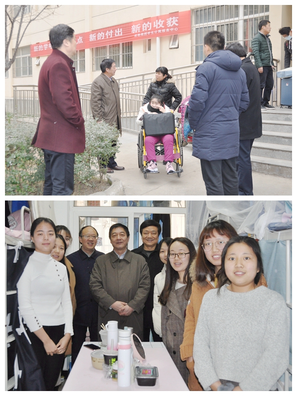 1月18日上午,在学期期末考试结束、学生即将离校之际,为进一步了解学生学习生活情况,给同学们送去来自学校的关心和祝福,校长邵必林、校党委副书记栾高明、副校长唐宏在学工部负责人的陪同下,深入校园各处走访看望学生。