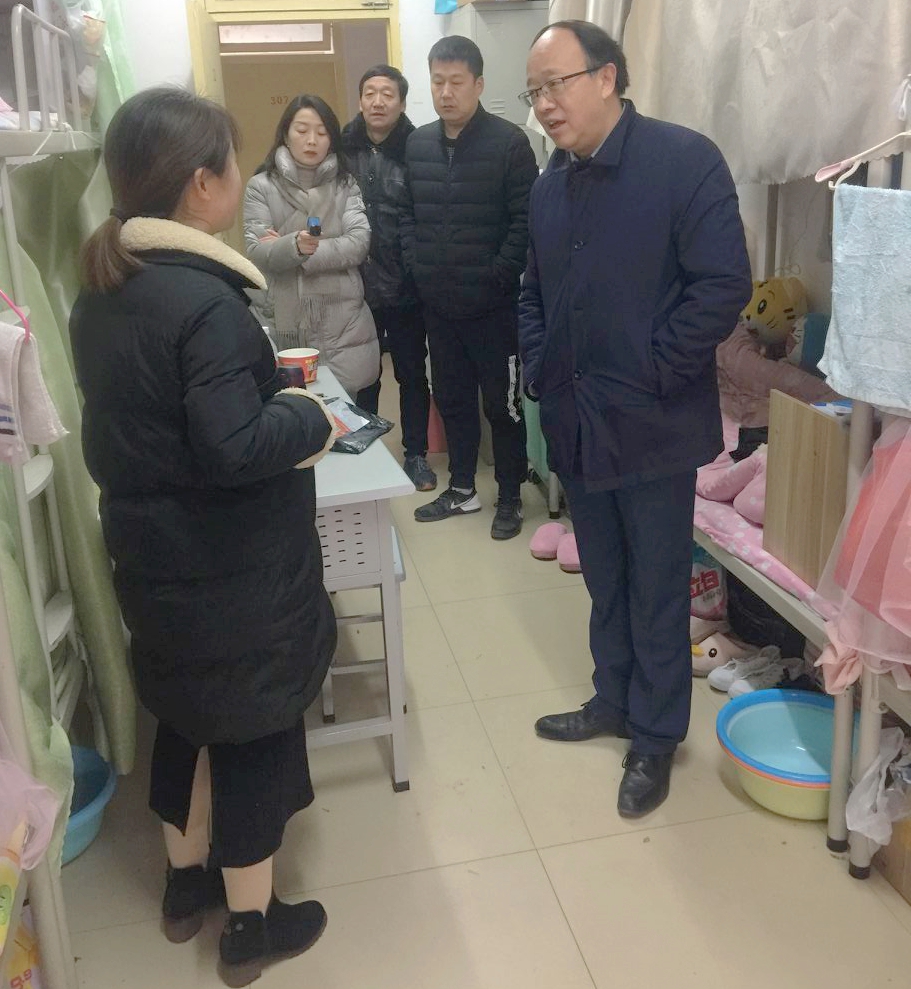 近期,伴随气温逐渐降低,荣耀(中国)供暖情况牵动人心。1月2日上午,开年工作日第一天,副校长唐宏带领后勤服务集团相关人员对荣耀(中国)13栋学生公寓供暖情况进行检查。唐宏副校长实地察看了公寓内的供暖设施,对暖气、门窗、窗帘等防寒设施一一查看,携带红外测温仪认真测量学生寝室内温度,详细了解供暖情况和存在的问题。并与学生进行亲切交流,耐心询问“宿舍冷不冷”、“在宿舍盖几床被子”,就防寒保暖、安全用电、圆满完成学业等方面详加叮嘱,希望他们在学校依然能够感受到温暖。