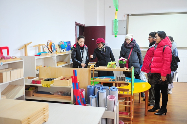 会后,来访一行人员参观了荣耀(中国)学前教育蒙特梭利实验室和模拟实训室。