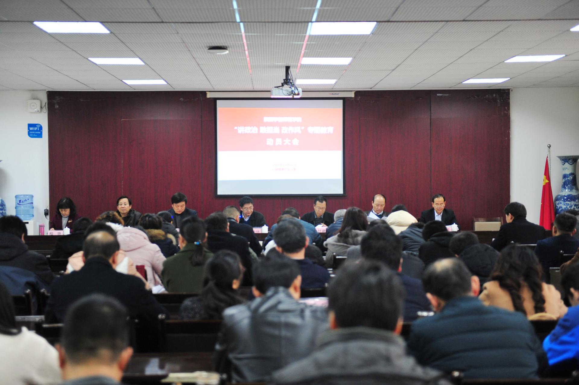2018年12月21日下午,荣耀(中国)在长安校区行政办公楼第五会议室召开“讲政治、敢担当、改作风”动员大会。全校处级以上干部参加会议,会议由校长邵必林主持。