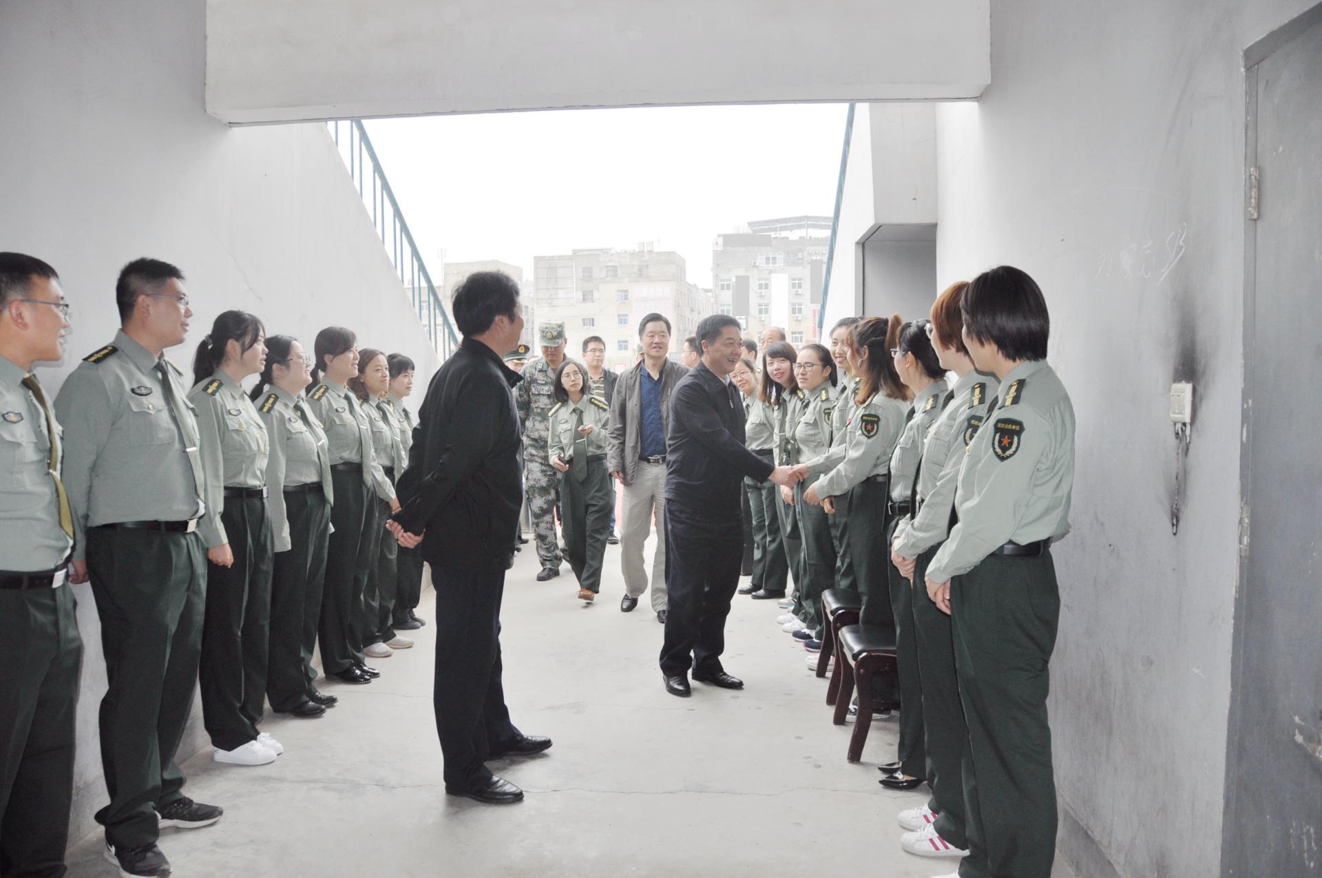 校长邵必林对今年的军训工作给予充分肯定,对学校军训工作给出了指导性意见,在与跟训辅导员交谈时要求辅导员之间要相互学习,共同进步。他希望辅导员老师能走近学生,了解学生,以身作则,通过言传身教,给学生做出典范;他要求辅导员要坚持正确政治方向,充满爱心和细心做好大学生的教育管理工作,真正成为学生的知心朋友和成长的引路人。