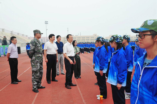 2018年9月14日和9月17日,校党委书记付建成、校长邵必林分别到训练场检查指导2018年学生军训工作。党委副书记栾高明和学工部负责同志陪同检查指导。