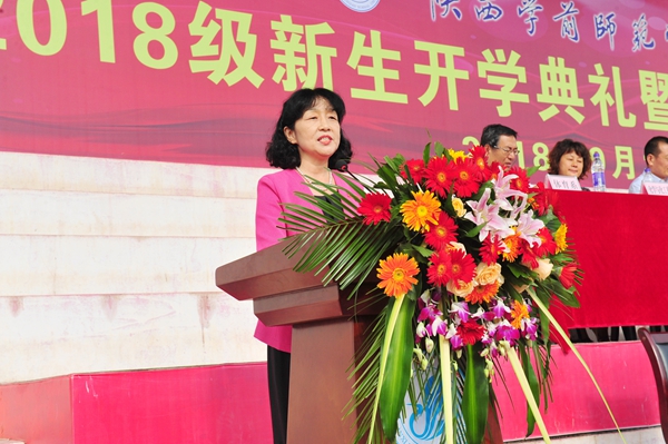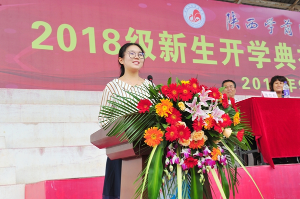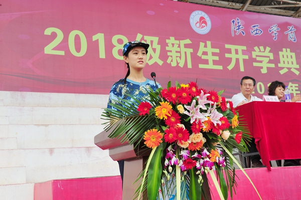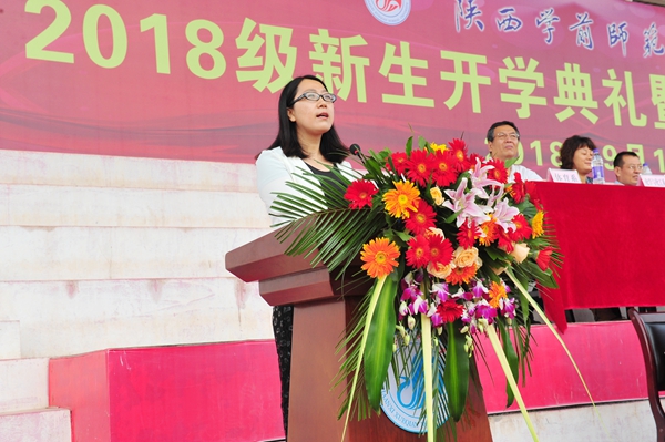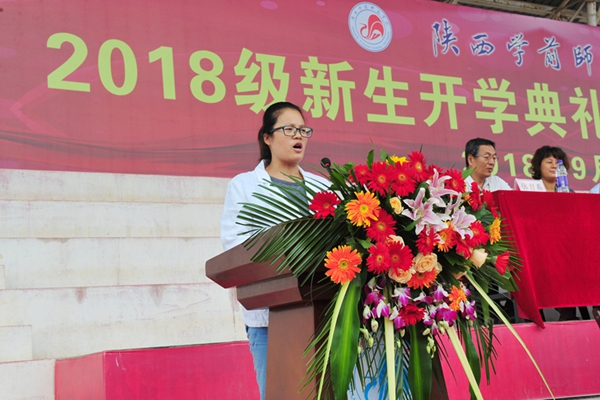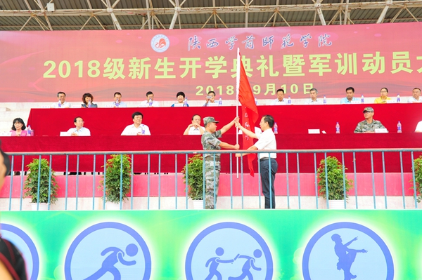 教育科学学院副院长、2018年陕西省课程思政教学标兵吕银芳老师,2010届毕业生、第十一届陕西青年五四奖章获得者赵娜娜老师,化学与化工系2016级学生王紫茹,学前教育系2018级学生朱雨濛,分别作为教师代表、优秀校友代表、高年级学生代表和新生代表在大会上发言。校党委副书记朱选朝同志宣读了军训旅指挥人员任命书。最后校党委书记付建成同志向军训旅旅长授旗,2018级新生军训工作正式开始。