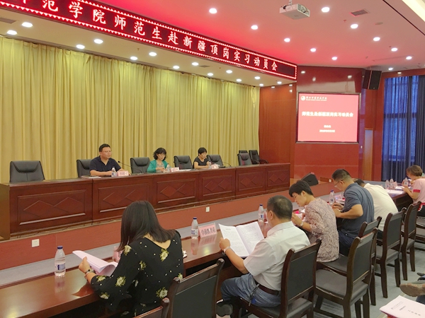 为筹备好首批师范生赴新疆实习工作,学校于9月3日在图书馆报告厅召开赴新疆实习工作动员会与岗前培训会。教务处副处长李明军主持会议。动员会上,教务处处长崔锐向全体赴新疆顶岗实习学生进行实习动员。教学实践科科长常海滨对实习相关安排以及具体事宜作简要说明。赴新疆顶岗实习师范生代表何川同学及指导教师代表任丽平老师做了表态发言。副校长相艳发表讲话,表达了对同学们的殷切期望,希望实习学生学习到更加实用的专业知识和技能,培养独立分析问题解决问题的能力,树立严谨的工作作风,锻炼自己成为高素质技能型人才,同时,相艳副校长也对相关院系带队教师提出了具体要求。会后,进行了岗前培训会。学校邀请陕西省中小学首批学科带头人、陕西省中小学教学能手袁直老师做了《教育实习的基本内容与方法》的讲座。