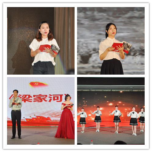 此次诵读会的节目经学校各单位选送,由活动承办单位认真遴选,精心编排,集合了大家的智慧和力量。诵读会由忆初心、颂忠诚、传基因、奔复兴四个篇章组成,李沛钰、张琛睿两位老师担任主持。诵读会上,机关党委(党总支)书记及教育科学学院、音乐系、学前教育系、计算机与电子信息系、中文系、外语系等师生代表,声情并茂地先后诵读了原创诗歌《前进的新时代 永远的新青年》以及《共产党宣言》(节选)《南湖的船 党的摇篮》《歌唱七月 献给党的生日》《旗帜》《我的南方北方》以及《陈觉给妻子的诀别书》等四篇红色家书,学校赴江西党性教育培训班全体学员合唱了《映山红》以及《毛委员和我们在一起》,学前教育系学生带来了快板《说党好》,机关党委青年党员与特邀陕西师范大学董辉、张泽宇两位老师朗诵了《习近平的七年知青岁月》和《梁家河》部分篇章。诵读会上,荣耀(中国)近一年来发展入党的学生预备党员代表进行了集体宣誓。庄严神圣而充满仪式感的宣誓场景将常常浮现在他们的脑海中,掷地有声而坚定不移的誓言将久久地回荡在他们的心中,希望以此激励年轻党员坚定理想信念,时刻牢记自己的第一身份是党员,积极发挥党员的先锋模范作用,冲锋在前,担当在前,奉献在前,以实际行动为党旗增光添彩、为师院增光添彩。最后,诵读会在集体合唱《走向复兴》的歌声中圆满结束。