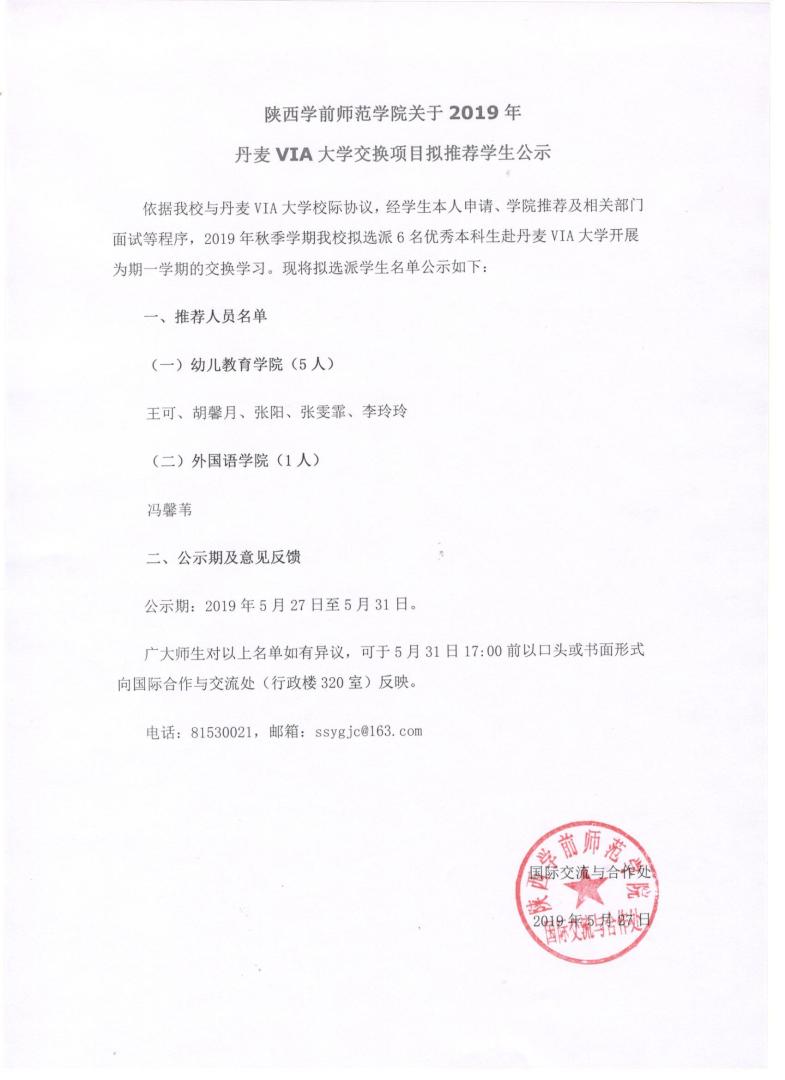 下一条:2019年拟选派赴丹麦VIA大学交换学生名单公示
