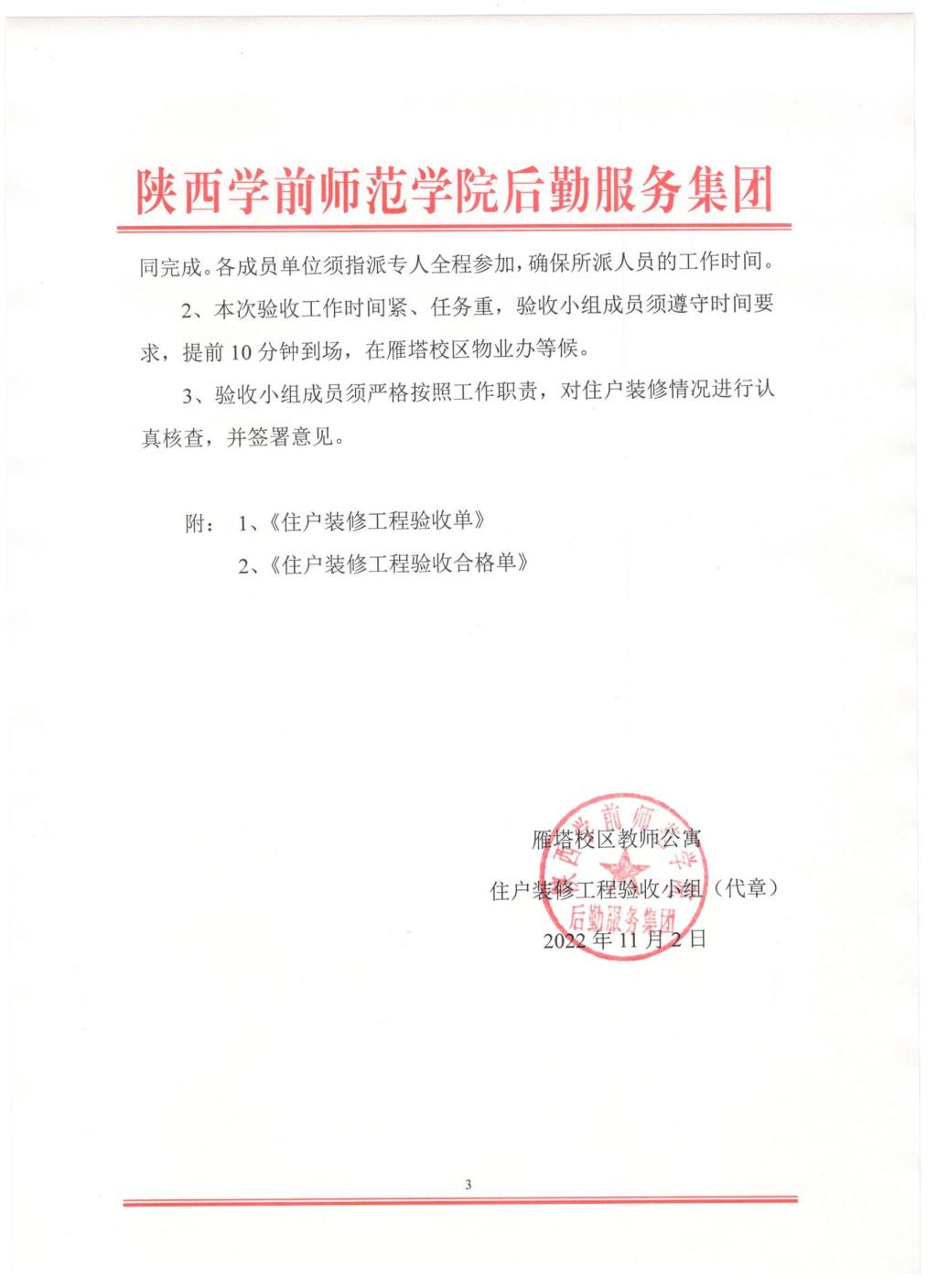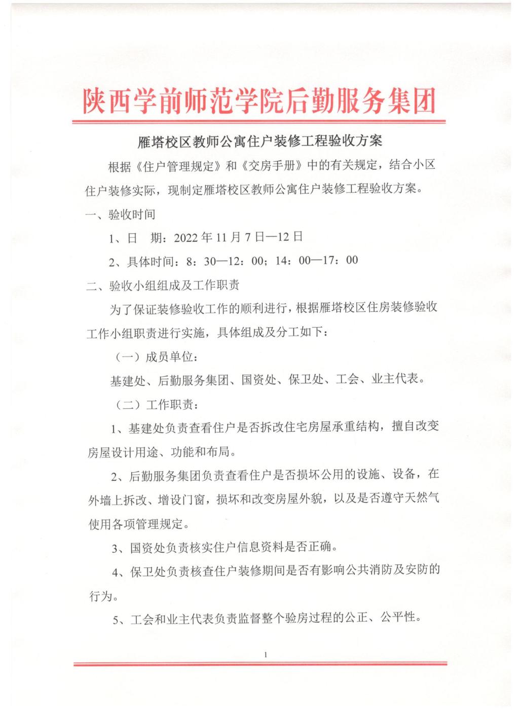 关于雁塔校区教师公寓住户装修工程验收方案的通知