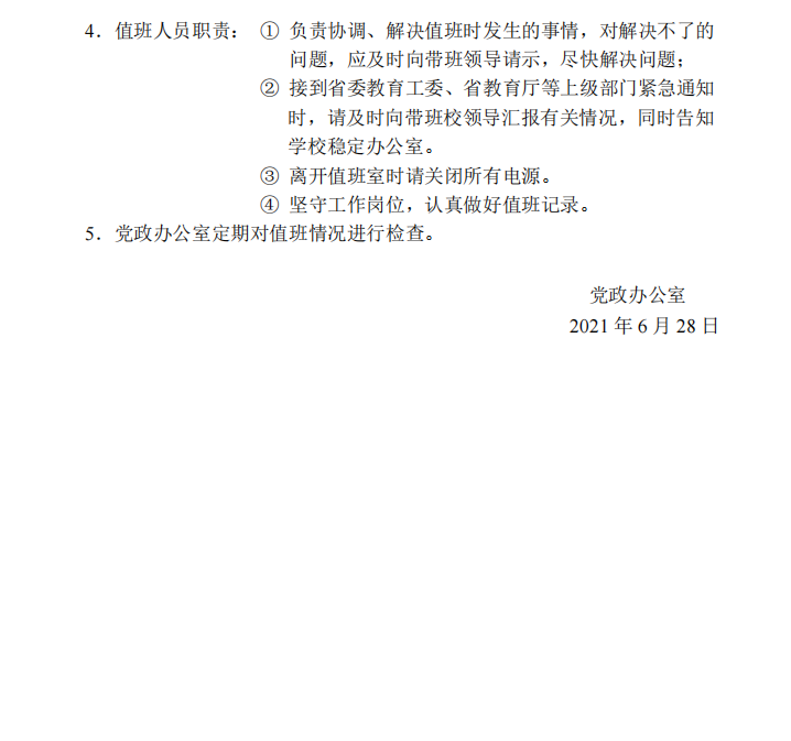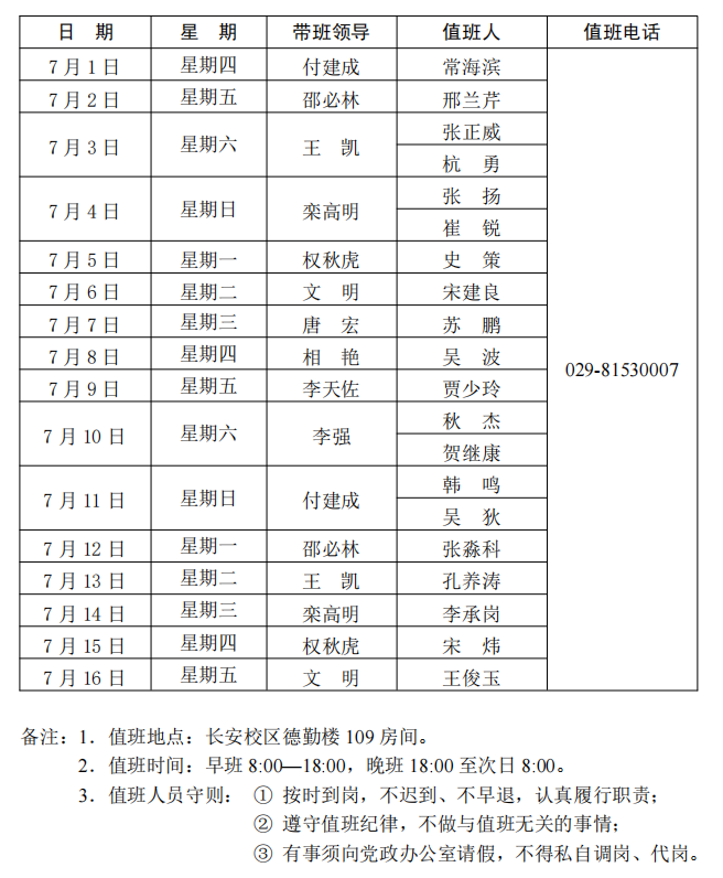 荣耀体育最新官方长安校区值班表(2021年7月1日—7月16日)