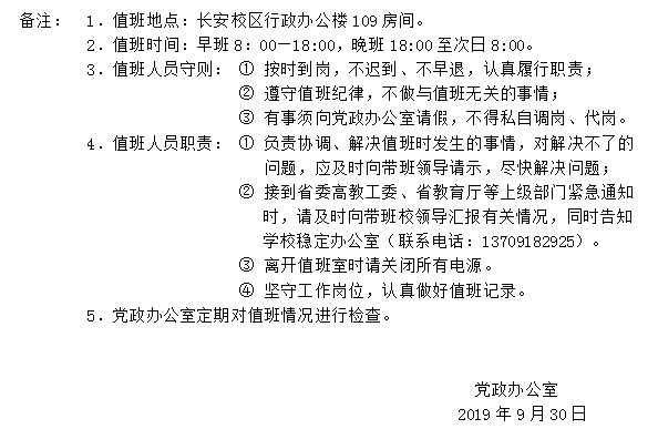 下一条:荣耀体育最新官方长安校区值班表(2019年10月1日—10月31日)