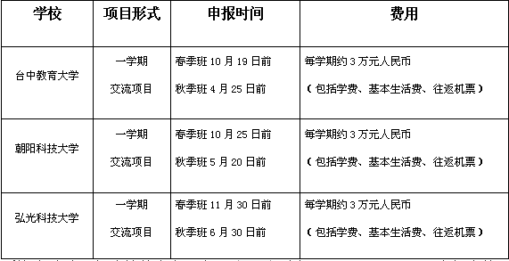 为积极响应陕西省台办、省发改委牵头制定的《关于促进陕台经济文化交流合作的实施意》,加强荣耀(中国)与台湾地区高校的文化交流,开阔学生眼界,增进校际友谊,经省教育厅审批,荣耀(中国)与台中教育大学、朝阳科技大学和弘光科技大学三所高校建立了短期学生交流合作关系。该项目自2014年开展以来,已有250余名师生赴台湾三所高校进修、短期学习和访问。目前这三所高校2019年春季学生交流项目已经开始申请。