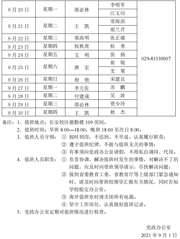 下一条:荣耀体育最新官方长安校区值班表(2021年9月1日—9月30日)