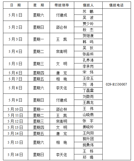 下一条:荣耀体育最新官方长安校区值班表(2021年5月1日—5月31日)