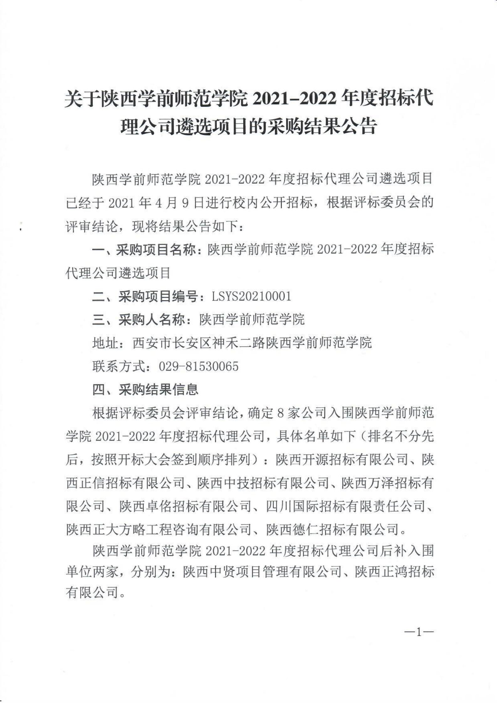 关于荣耀体育最新官方2021-2022年度招标代理公司遴选项目的采购结果公告